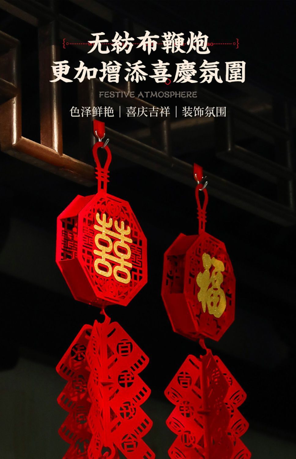 all the blessings and good fortune -- firecrackers pendant 2 strings + lighting chain + wall hanging