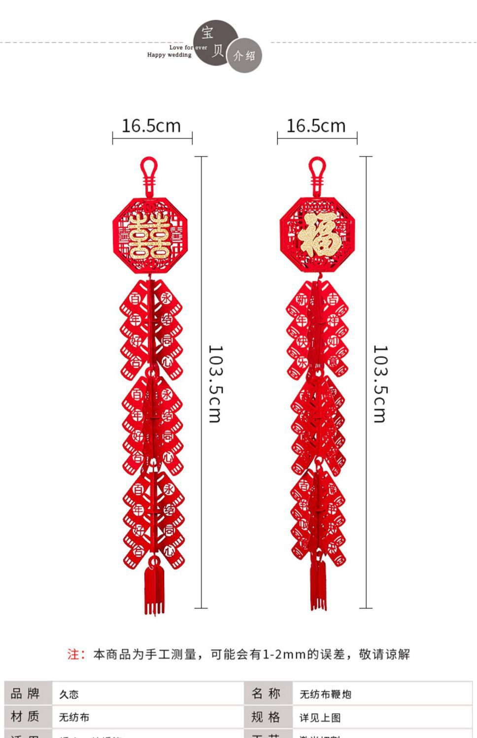 all the blessings and good fortune -- 1 string of firecrackers pendant
