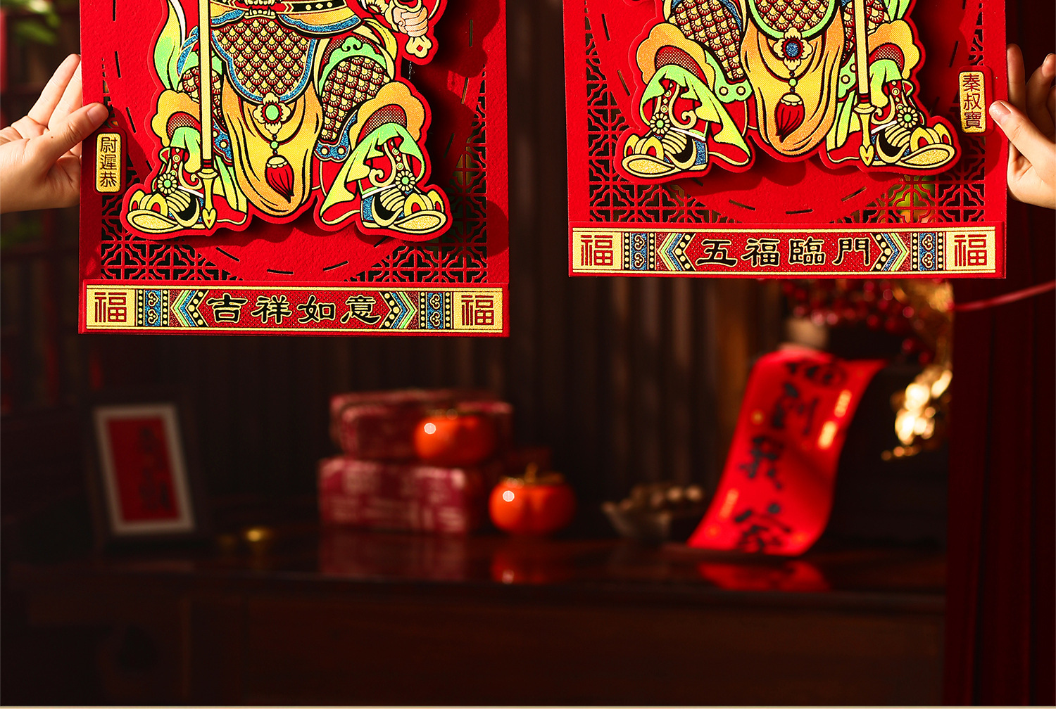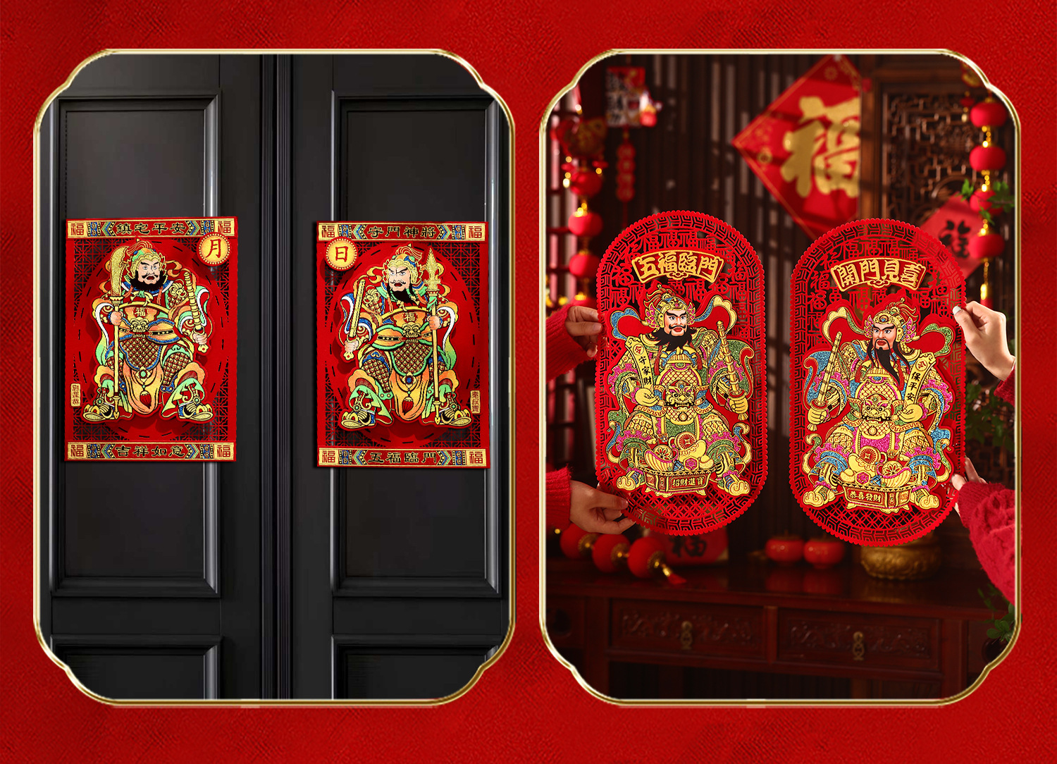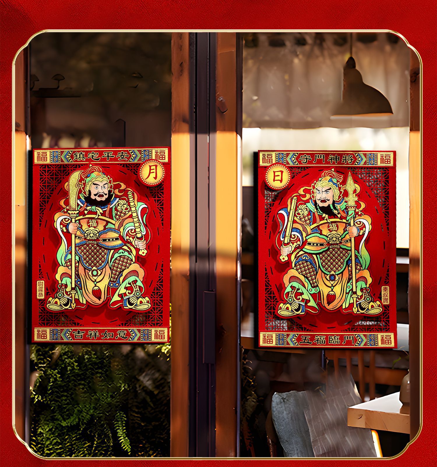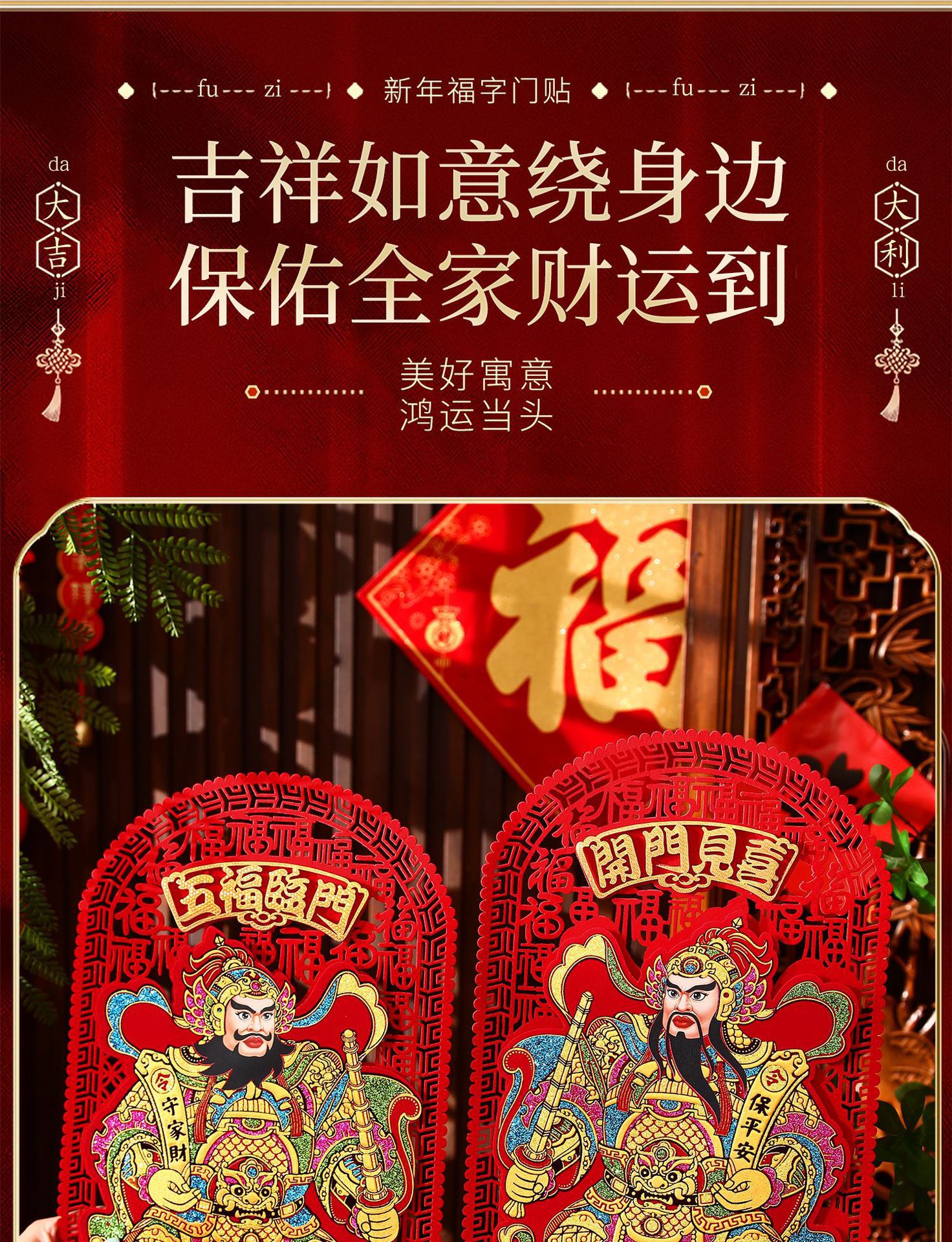 gilding large size door-god [lucky + five blessings]]