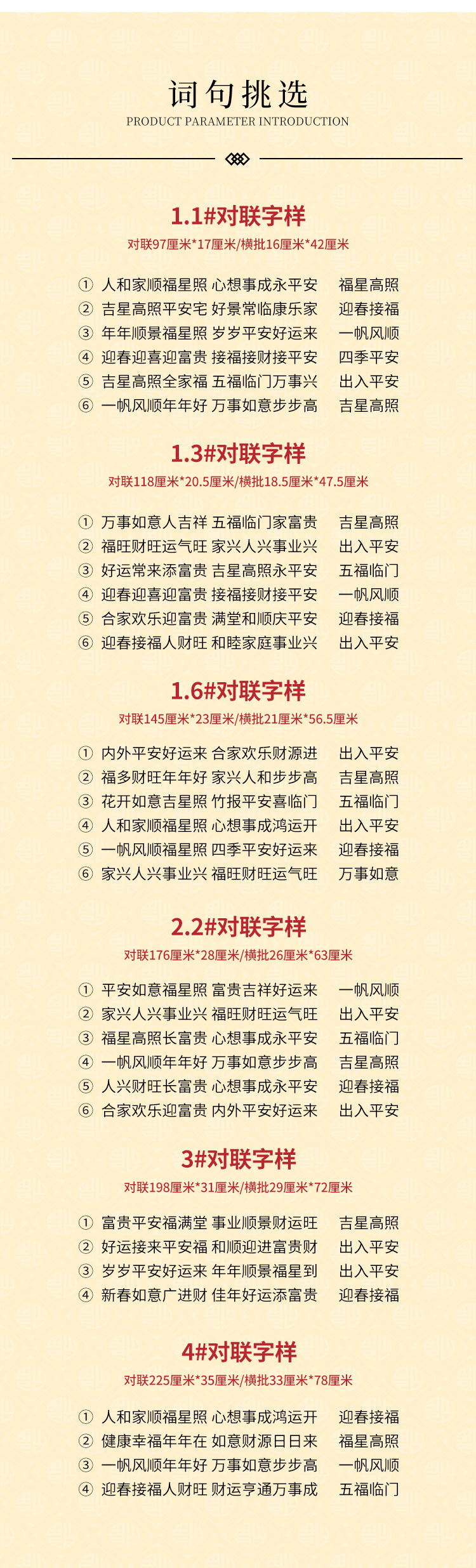 | 1.1m welcome the spring, welcome the wealth, receive the blessing, receive the wealth, receive the peace | CN¥ 23.6 | 300 pair available |
