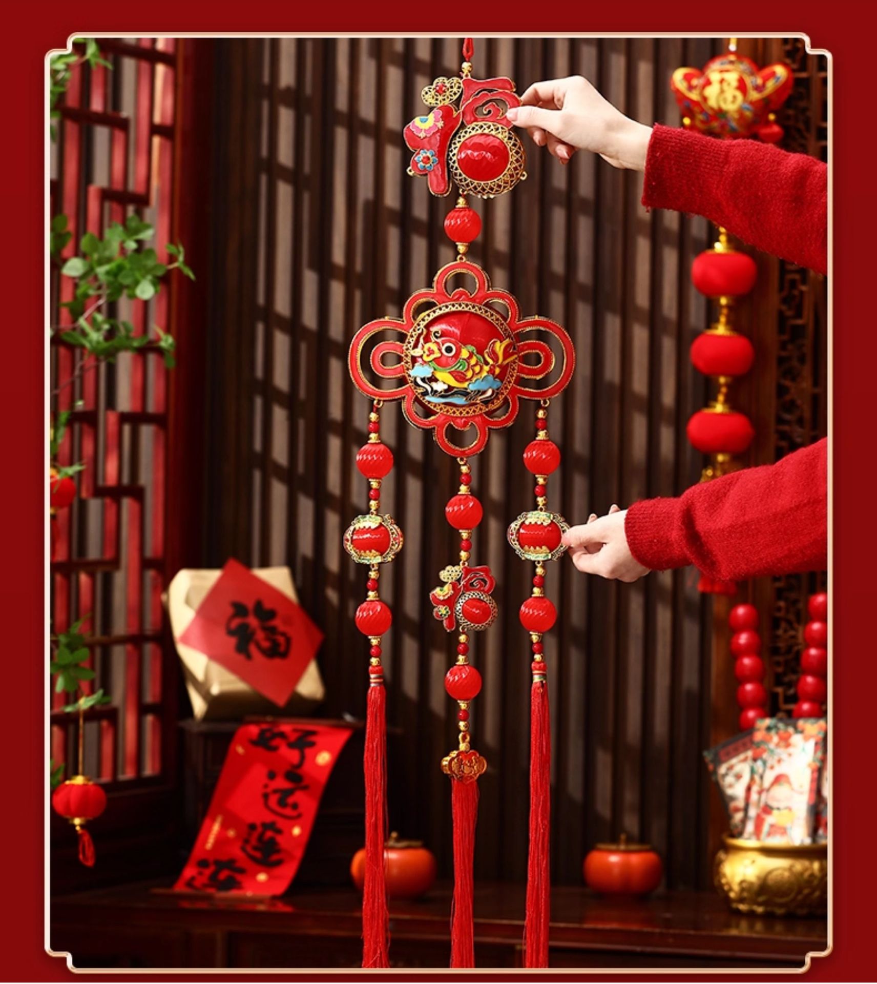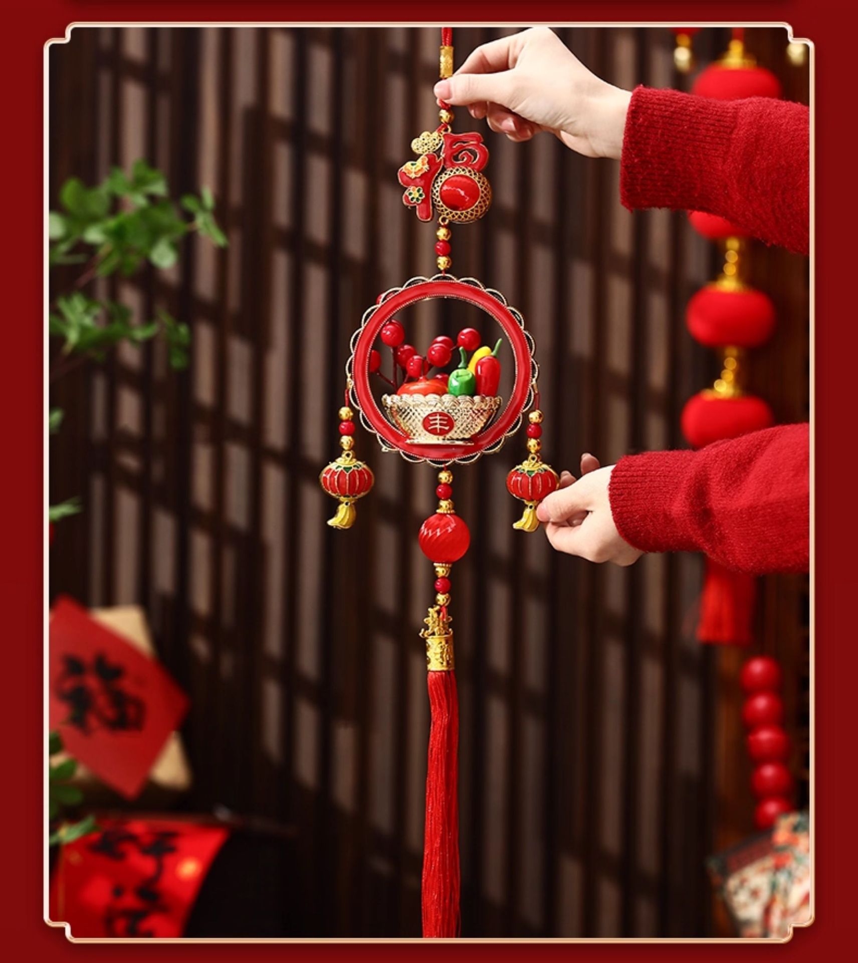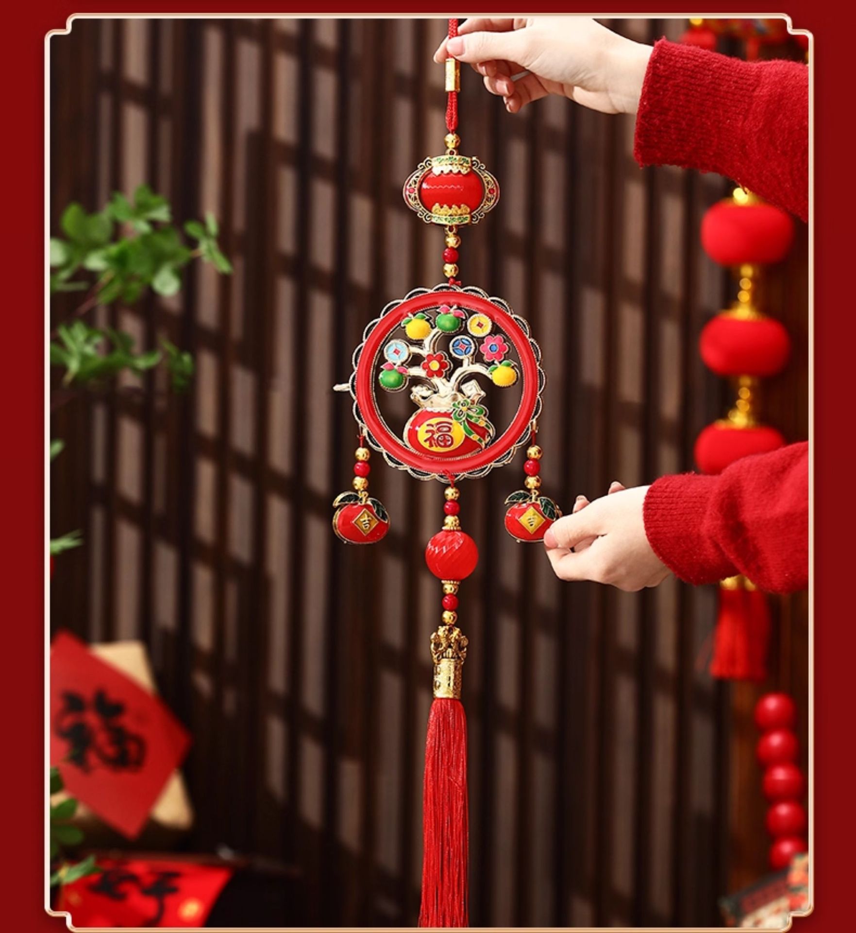 fu character hanging apple-small size