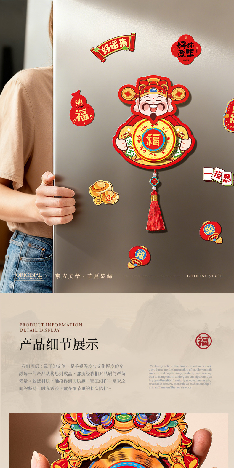 [god of wealth sending blessing] rotating refridgerator magnets
