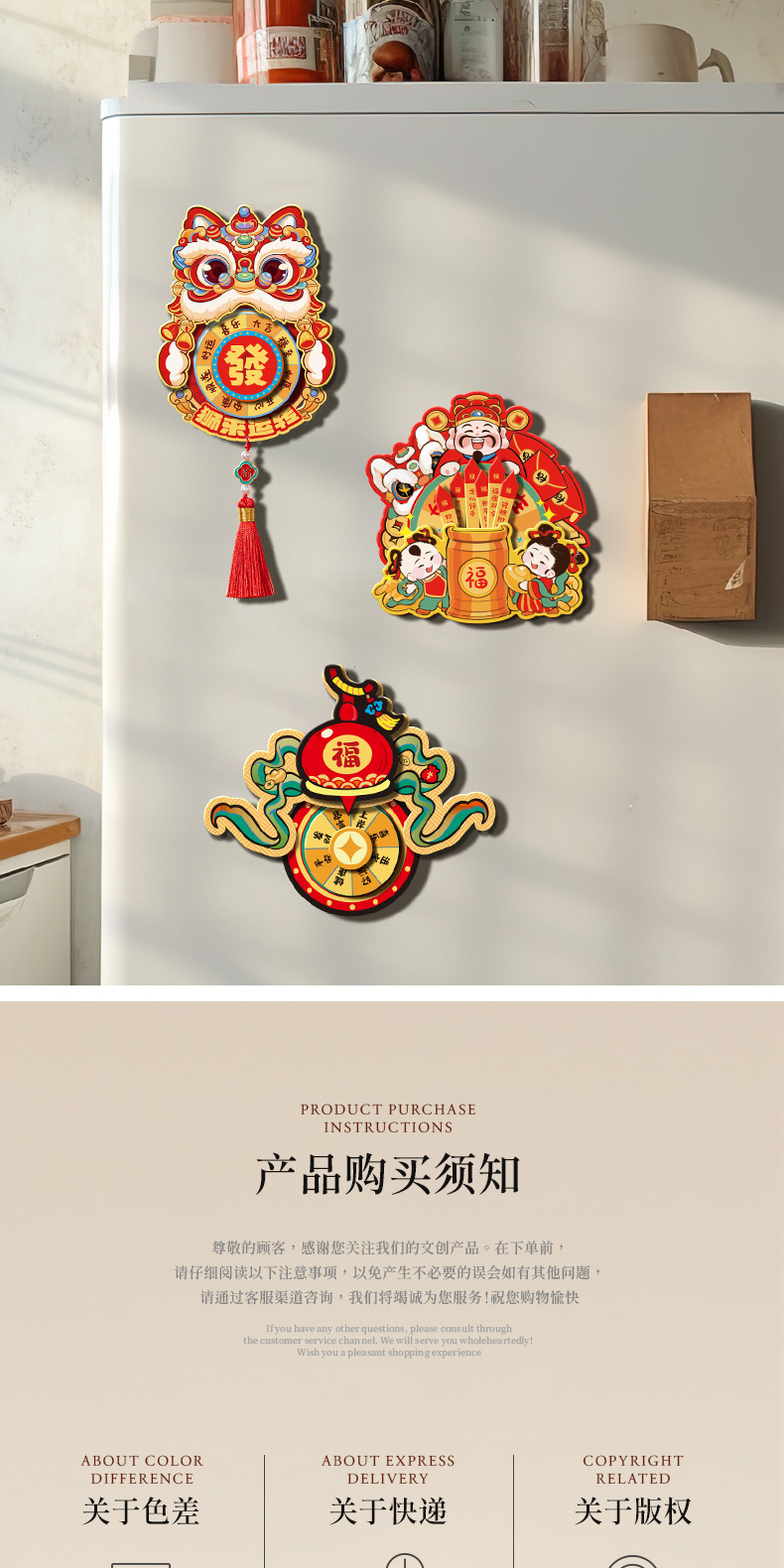 [fortune] + [god of wealth sending blessing] rotate refridgerator magnets (2 in total)