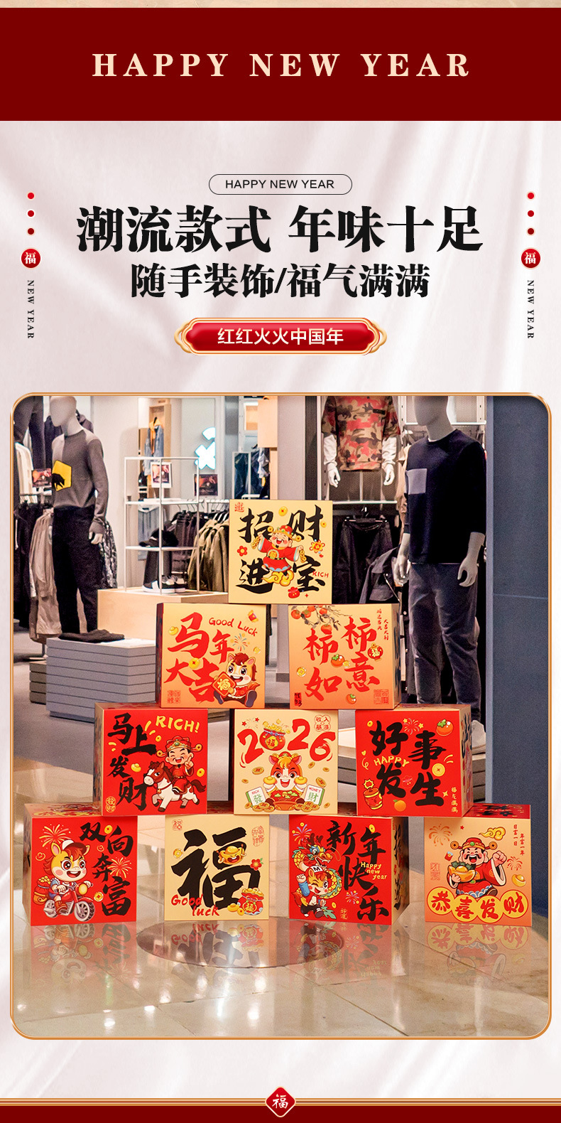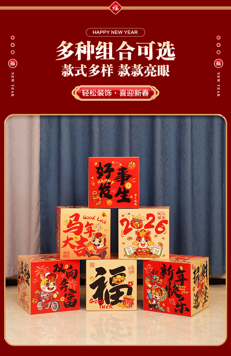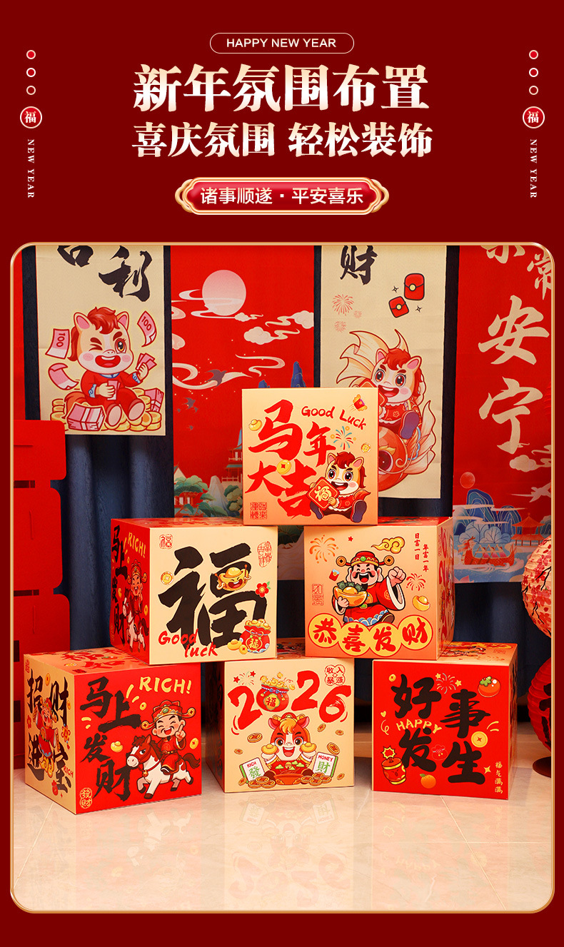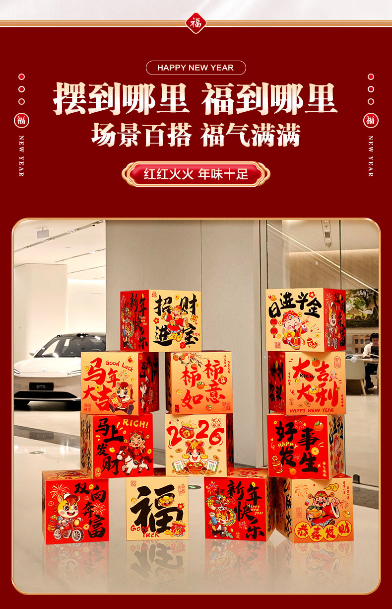 happy new year hanging cloth + liulian fu + three-dimensional fu character +6 ground pile boxes