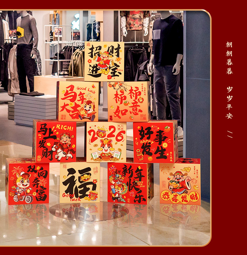 lucky hanging cloth + liulianfu + three-dimensional fu character +6 ground pile boxes