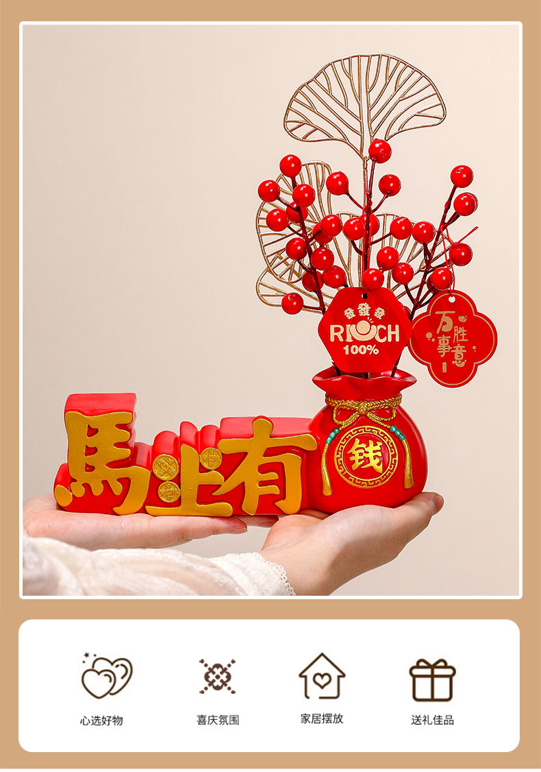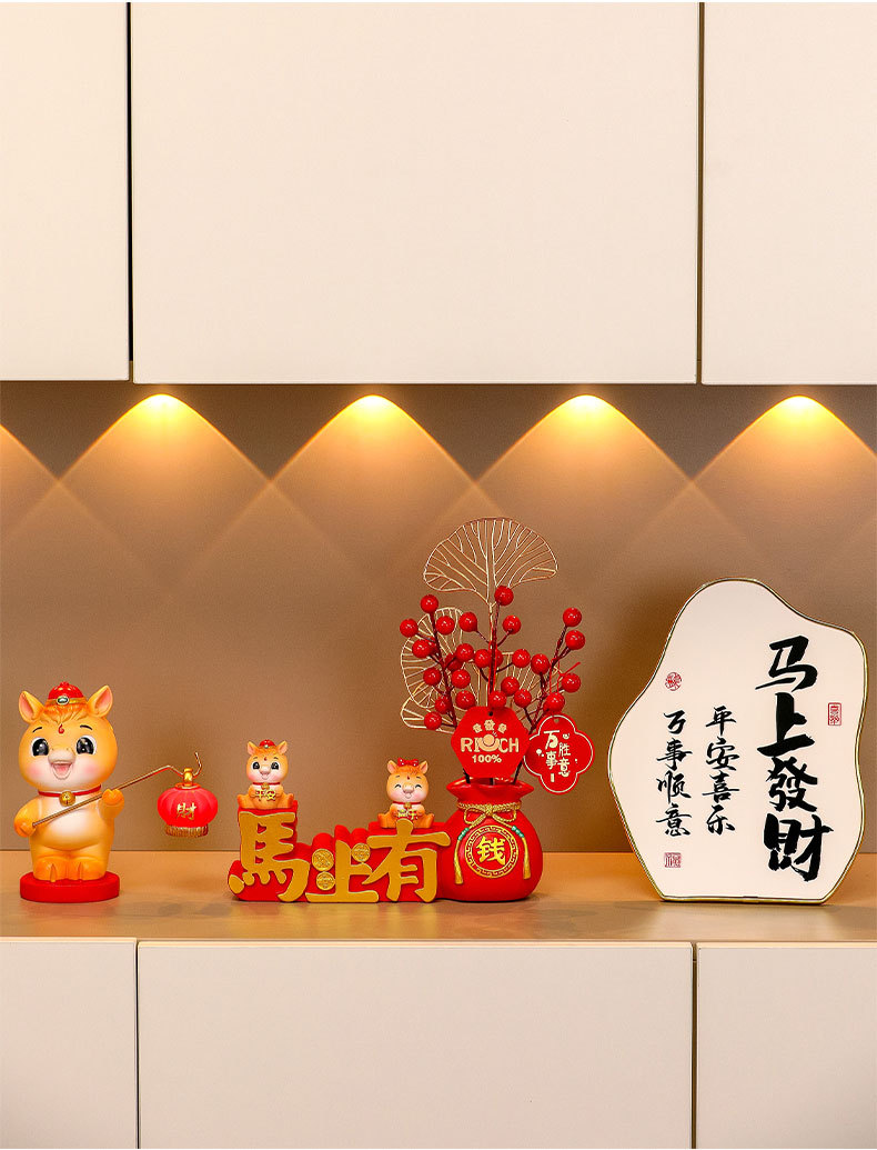 immediately rich fortune fruit + ping an horse + xi le horse + photo frame + standing lantern horse