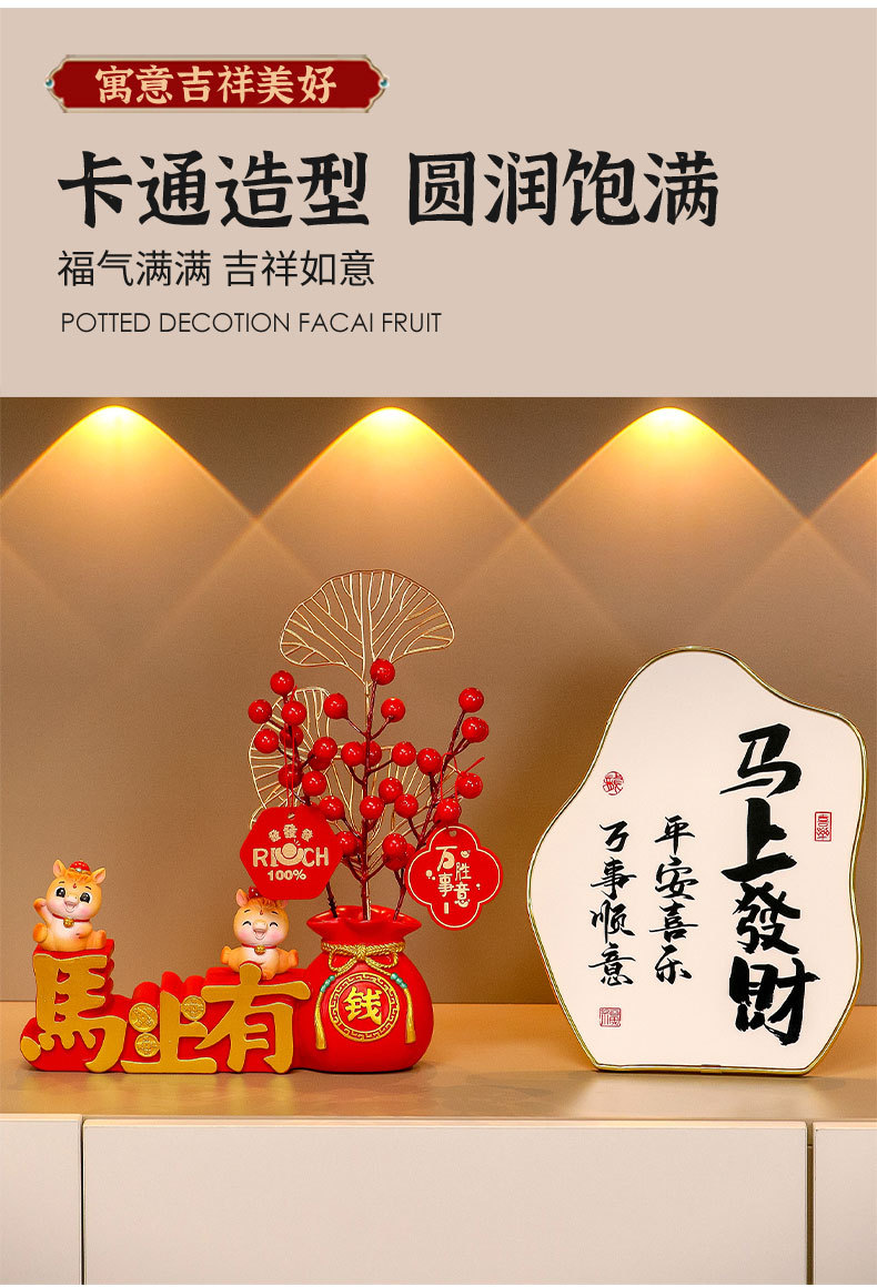 immediately rich fortune fruit + lucky horse + lucky horse + photo frame + sitting lantern horse