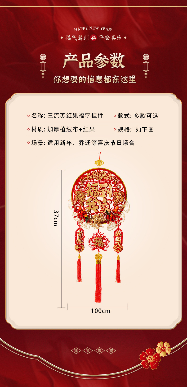 chinese hawthorn three tassel pendant-happy new year