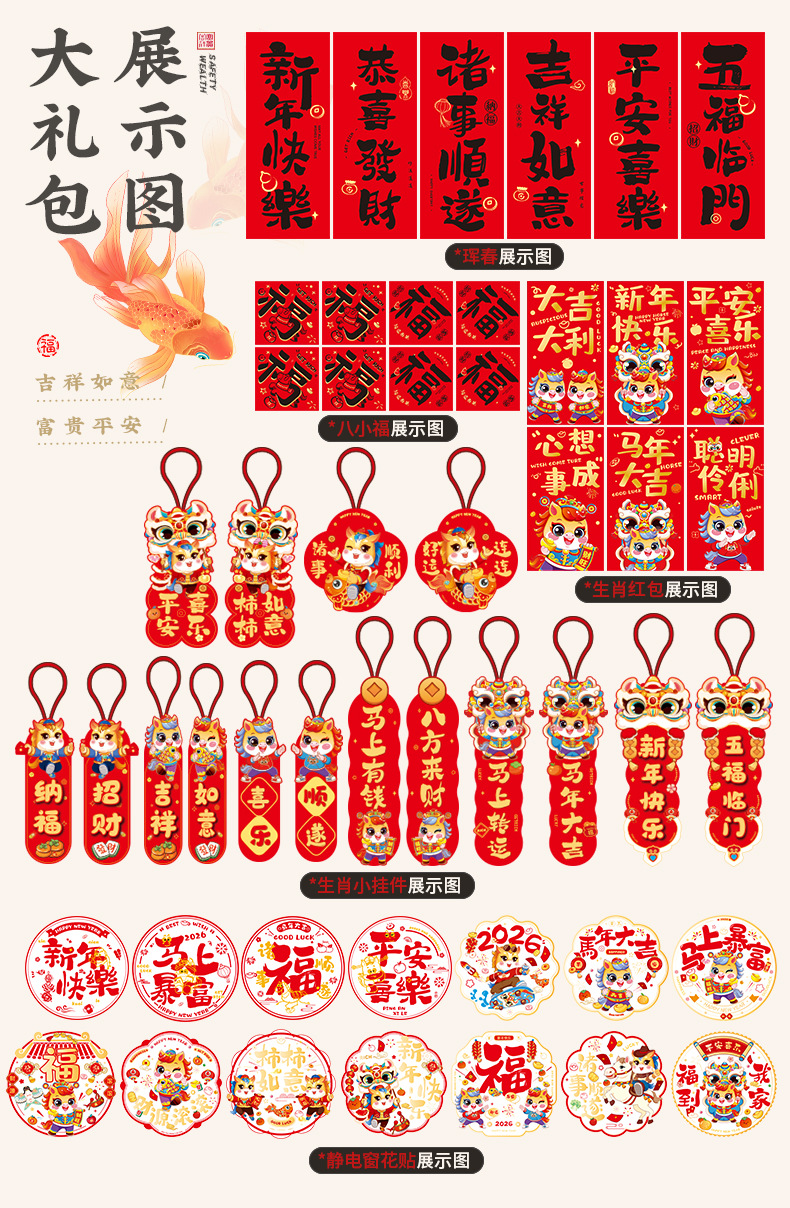 [one set] golden horse sending blessing_62 piece set
