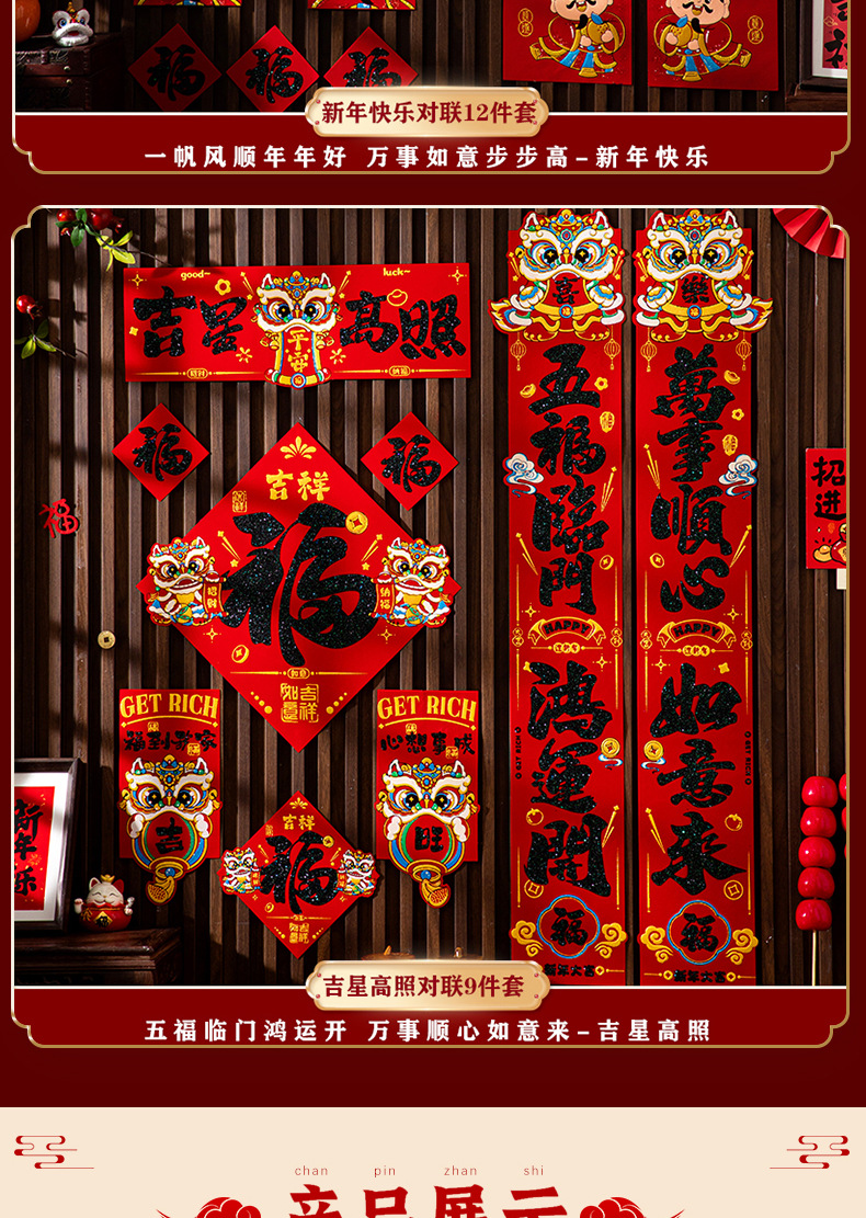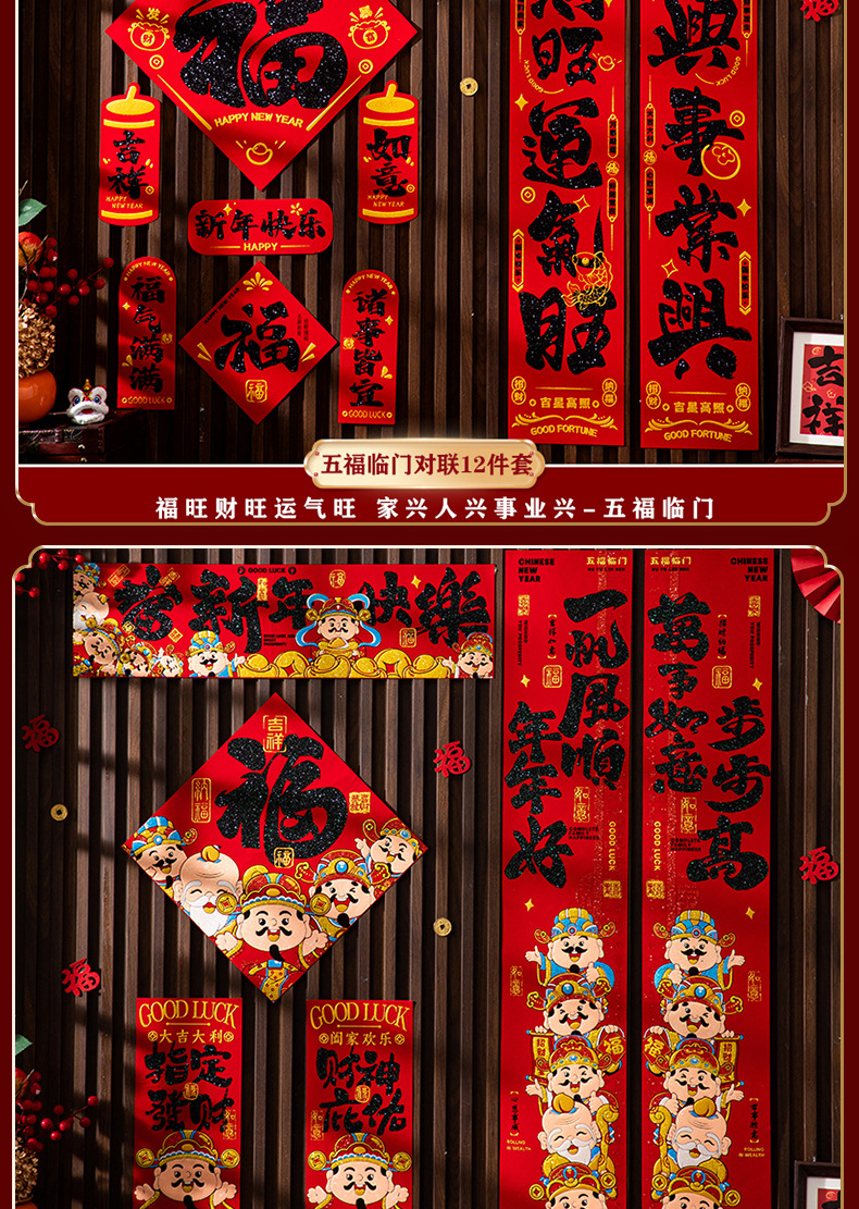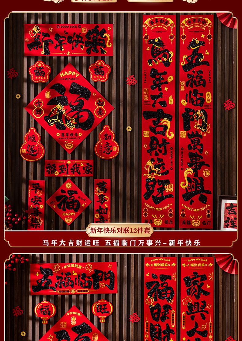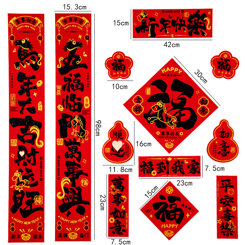 (12-piece set) five blessings [adhesive flocking gilding couplet]]