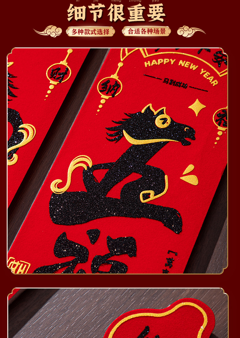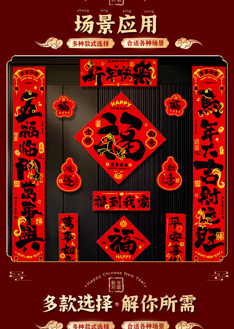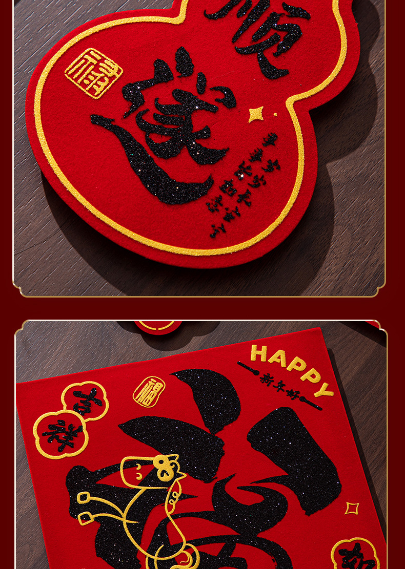 (9-piece set) happy new year [adhesive flocking gilding couplet]]