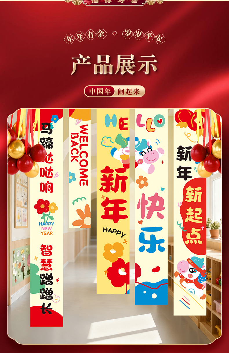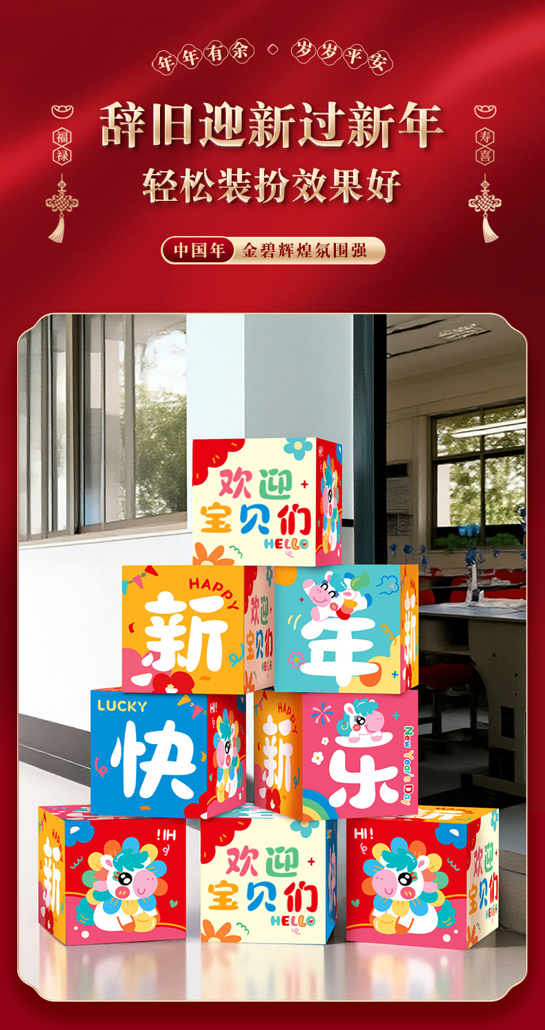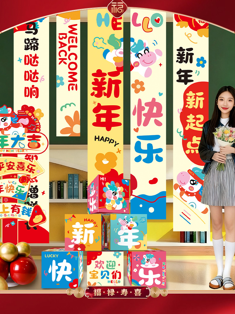 [happy new year] hanging cloth + pile style boxes + road guide kt board package