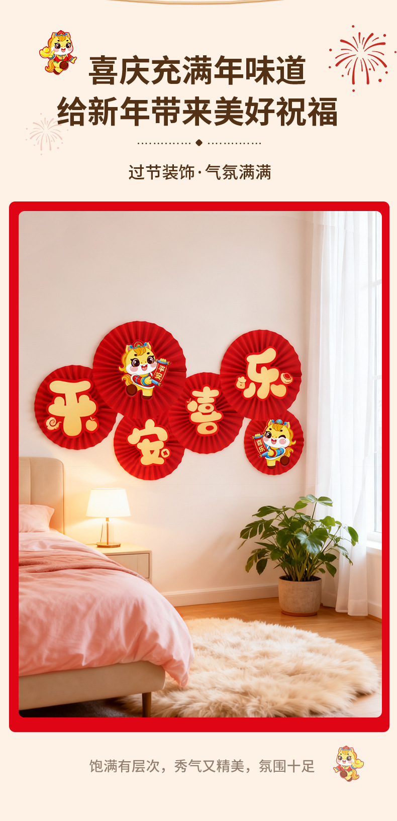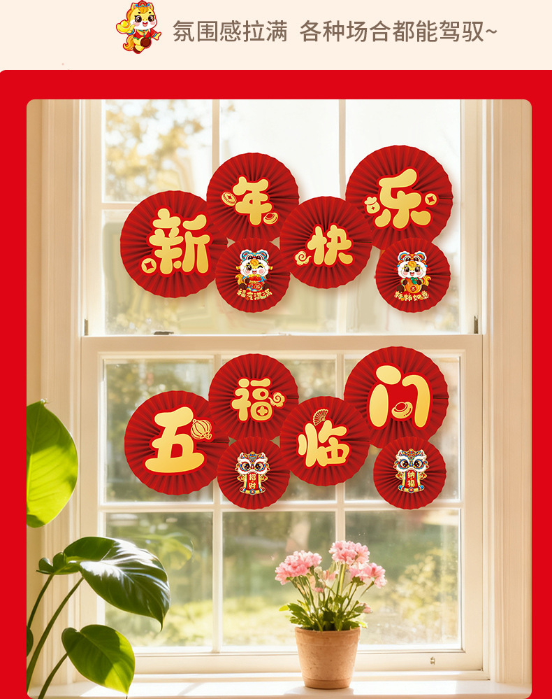 [happy new year]-paper fan flower 6 pack