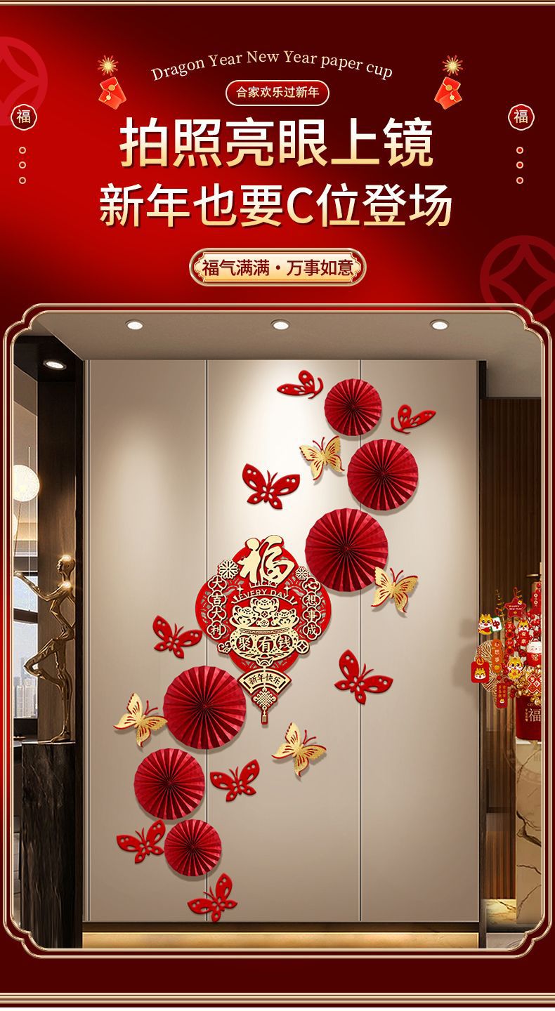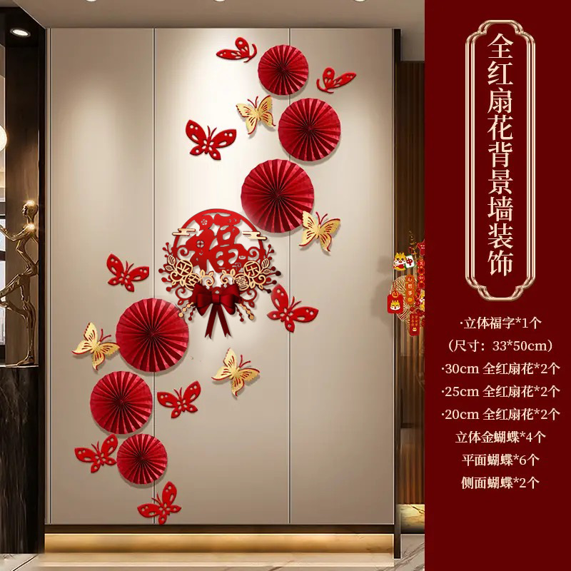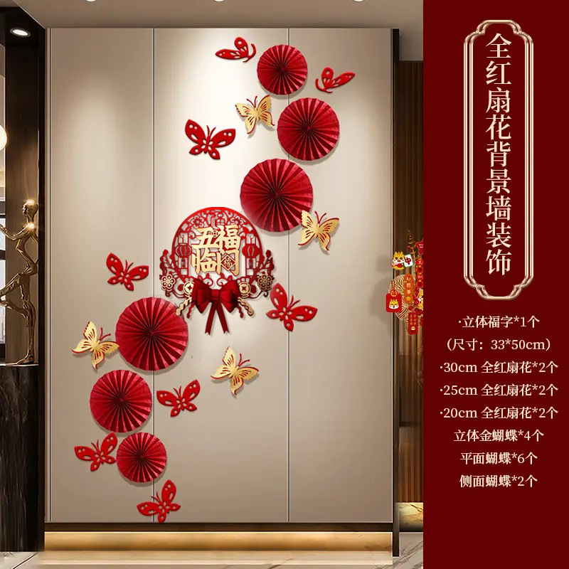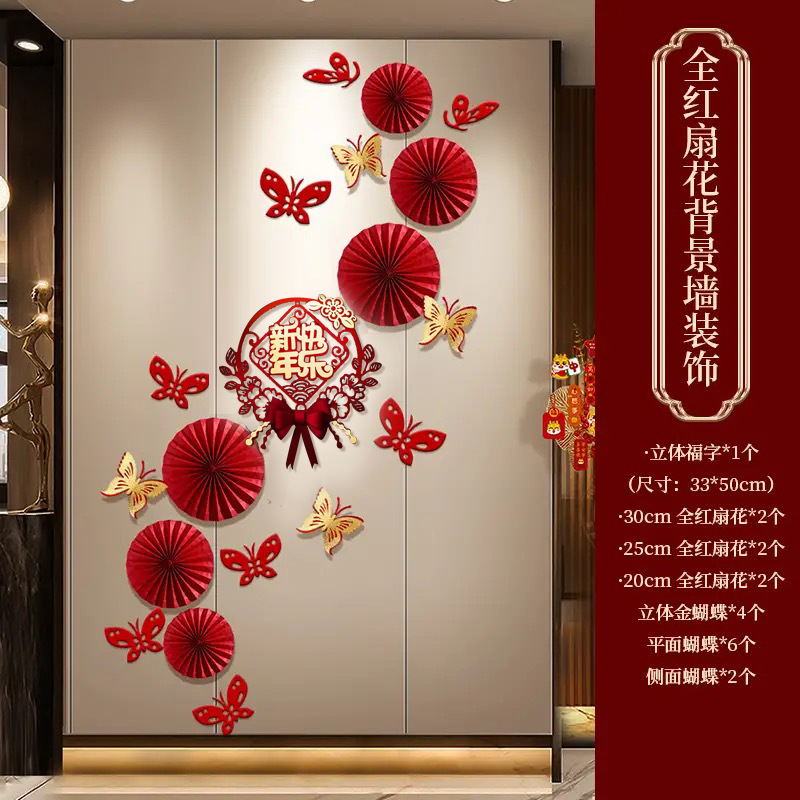 happy new year all red fan flower set (free traceless dispensing)