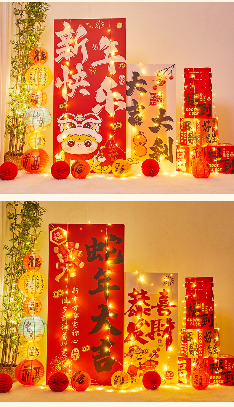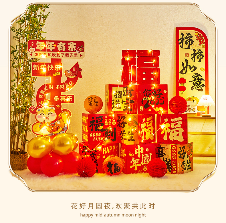 (happy new year) package (including 4 gift boxes, 10 lanterns and 1 blessing)