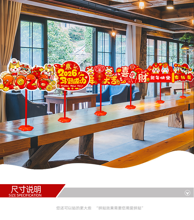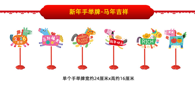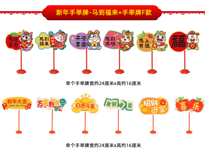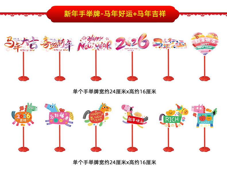 new year whiteboard-horse to fulai + new year whiteboard-immediately rich + pole * 2 + base * 2