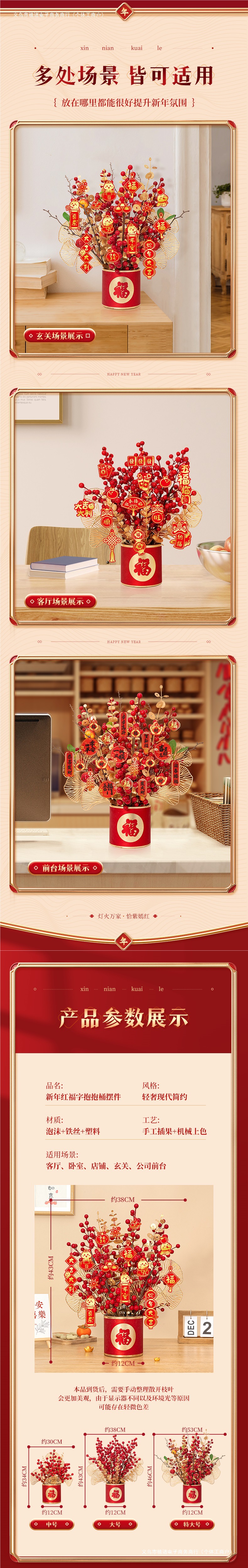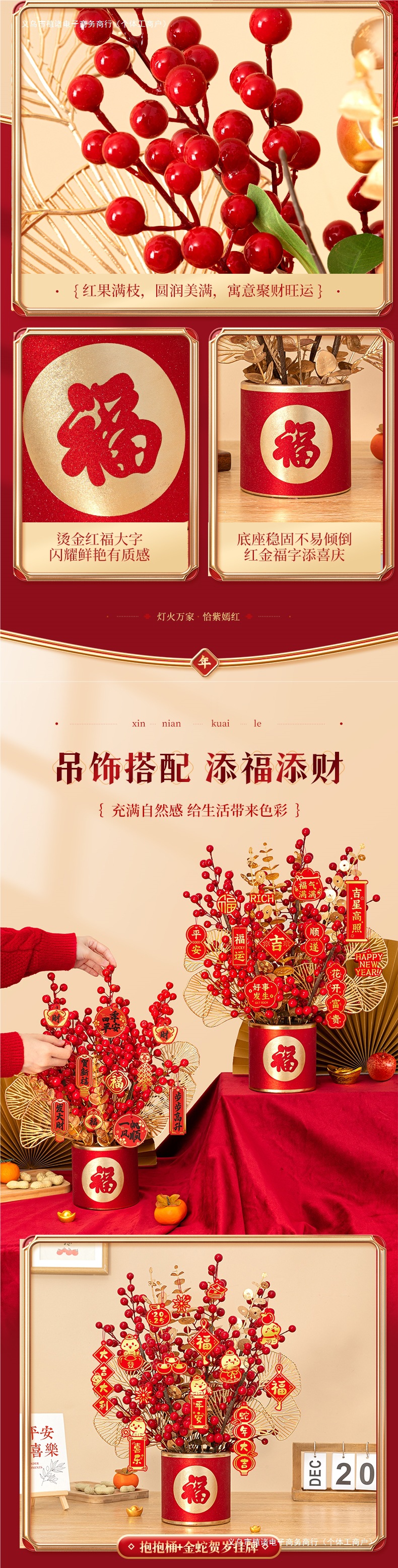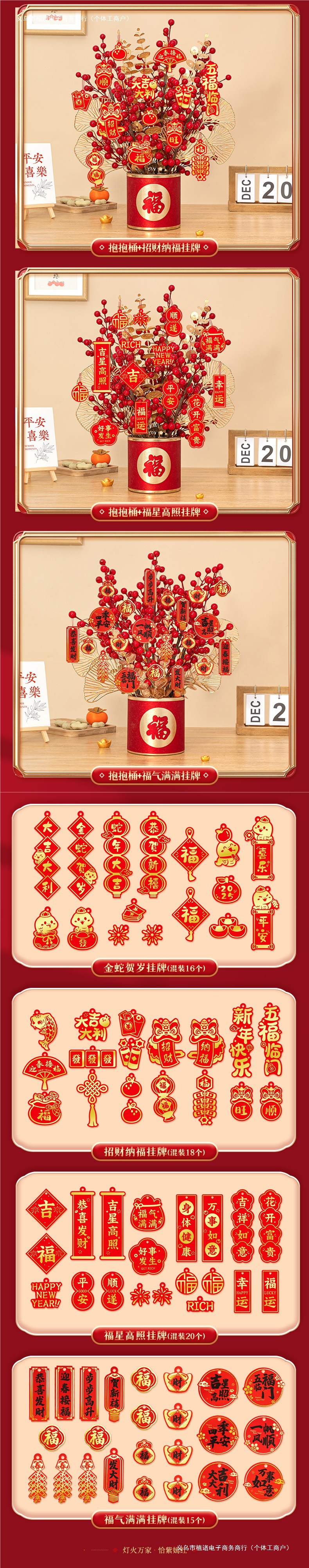 fu character flower pot + f style flower branch + full of blessing