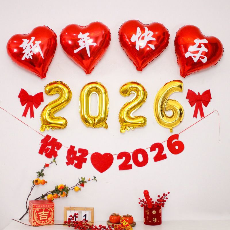 18-inch red heart [happy new year] (4 packs) + tire pump