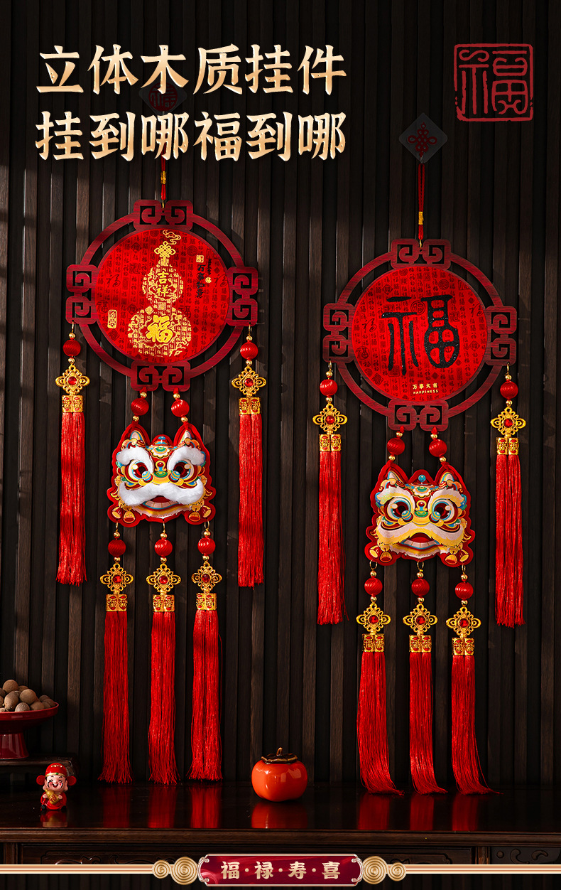 [baifu-hanging lion] wood ornaments-single