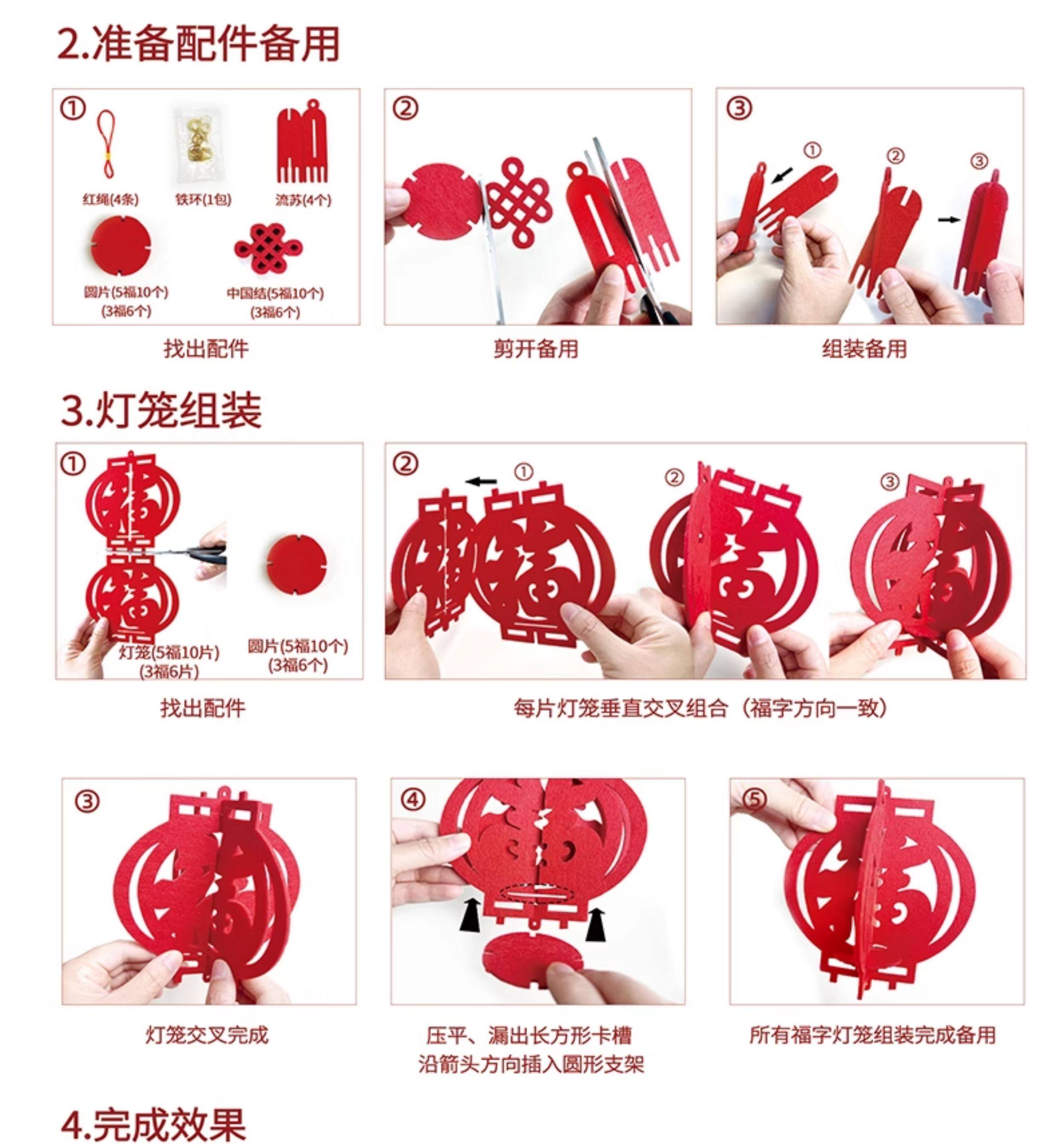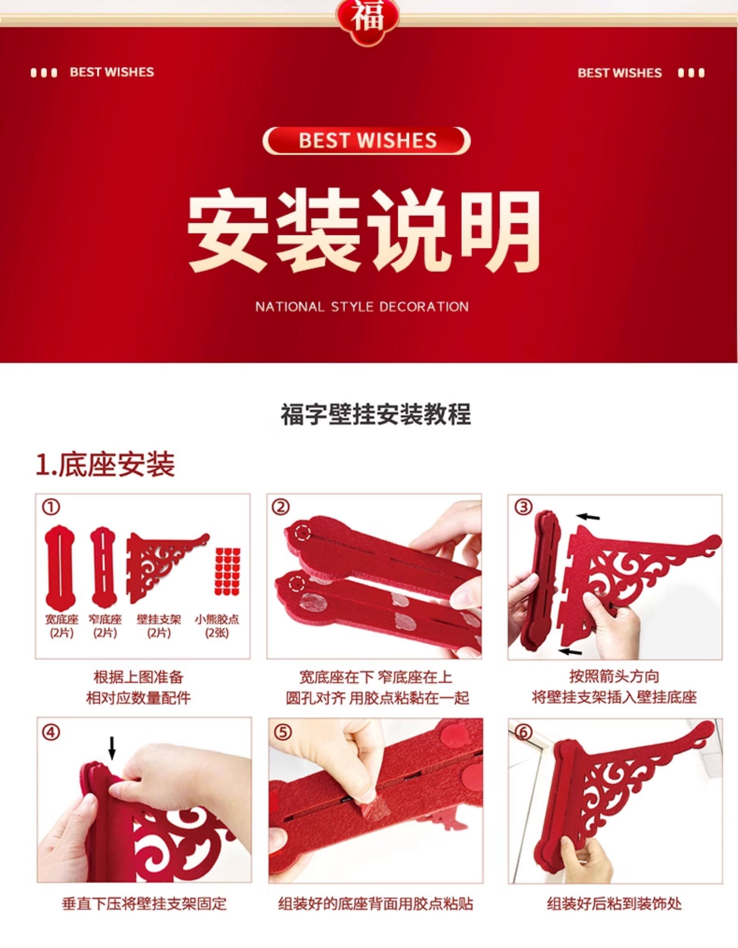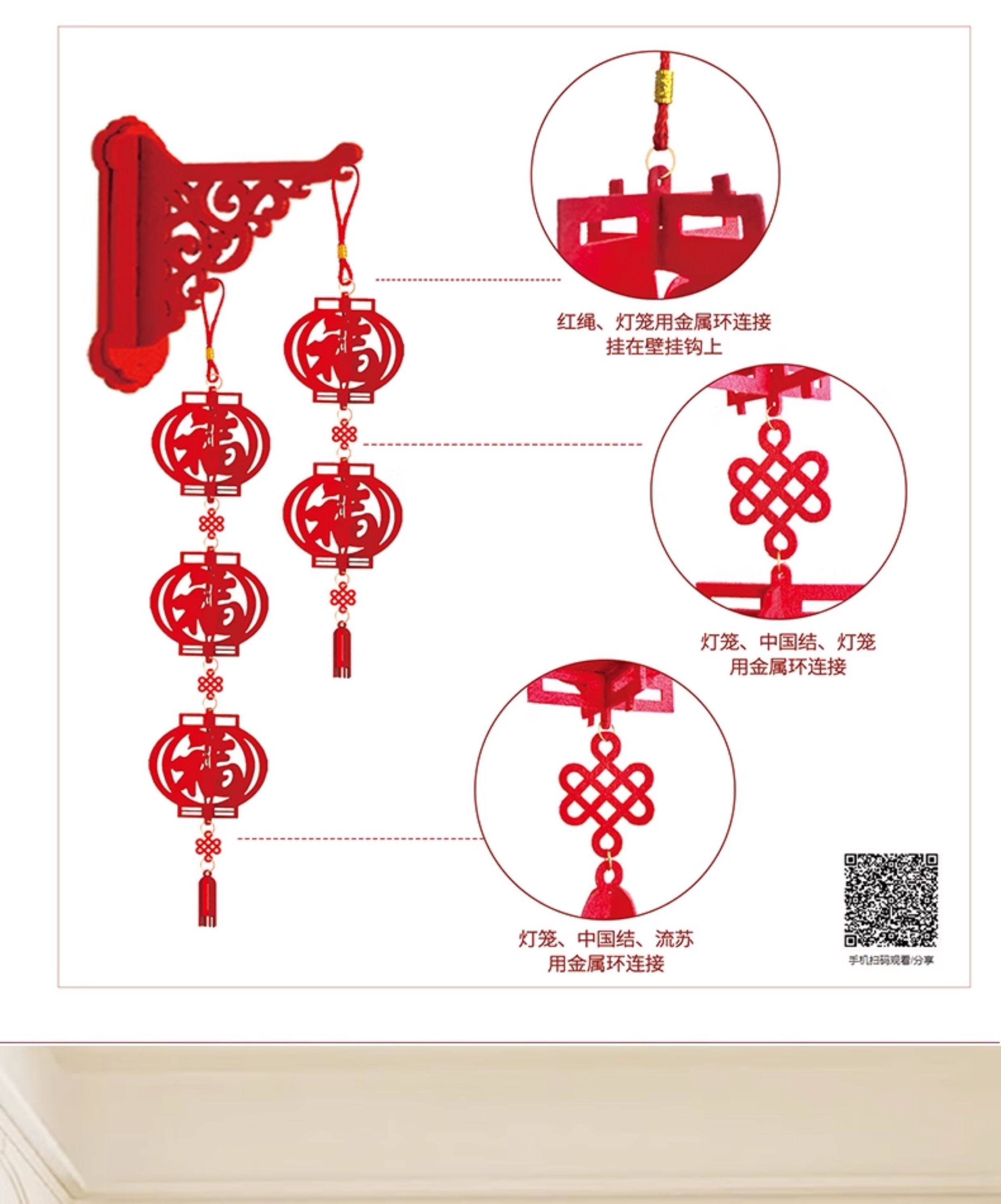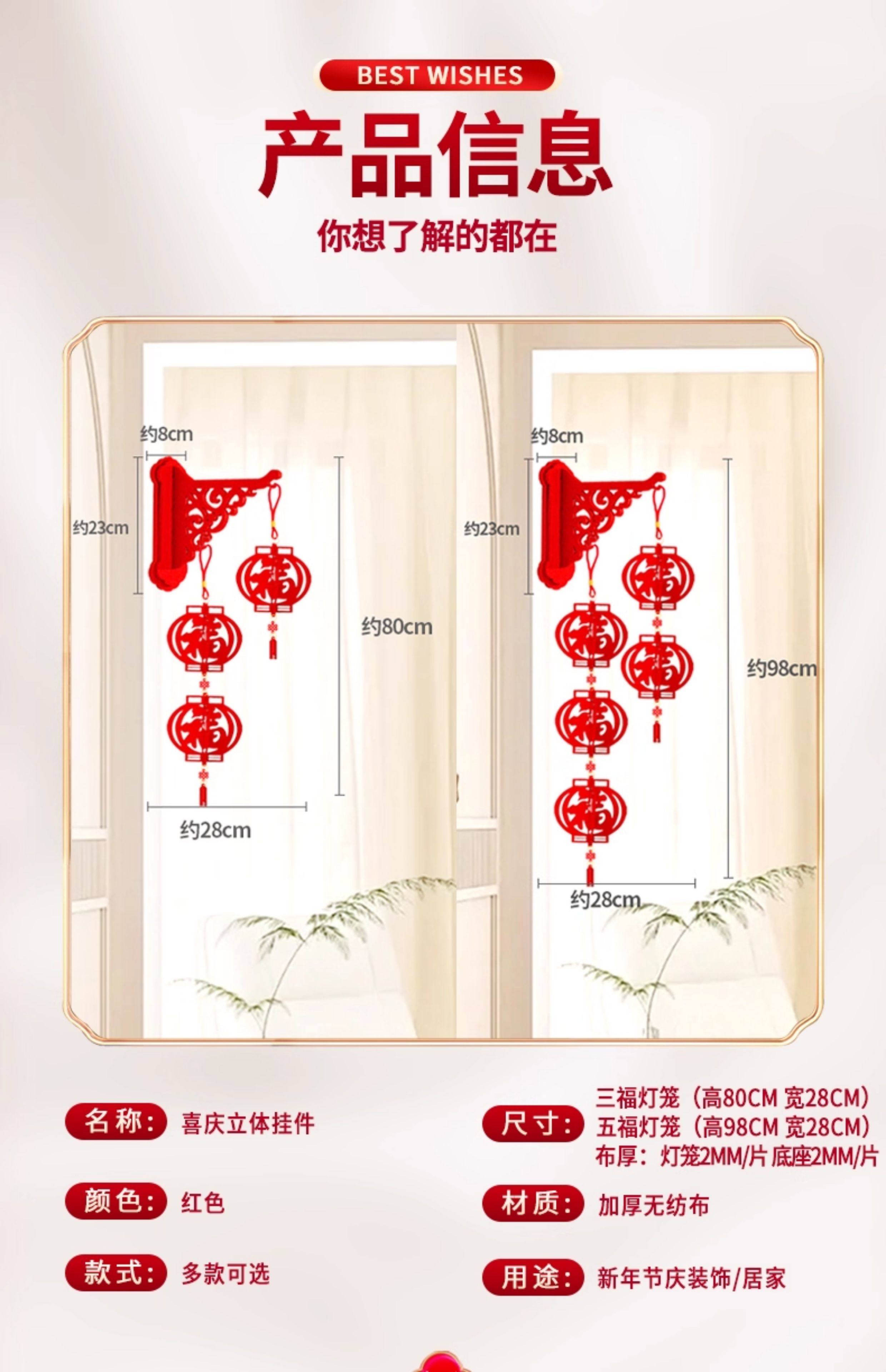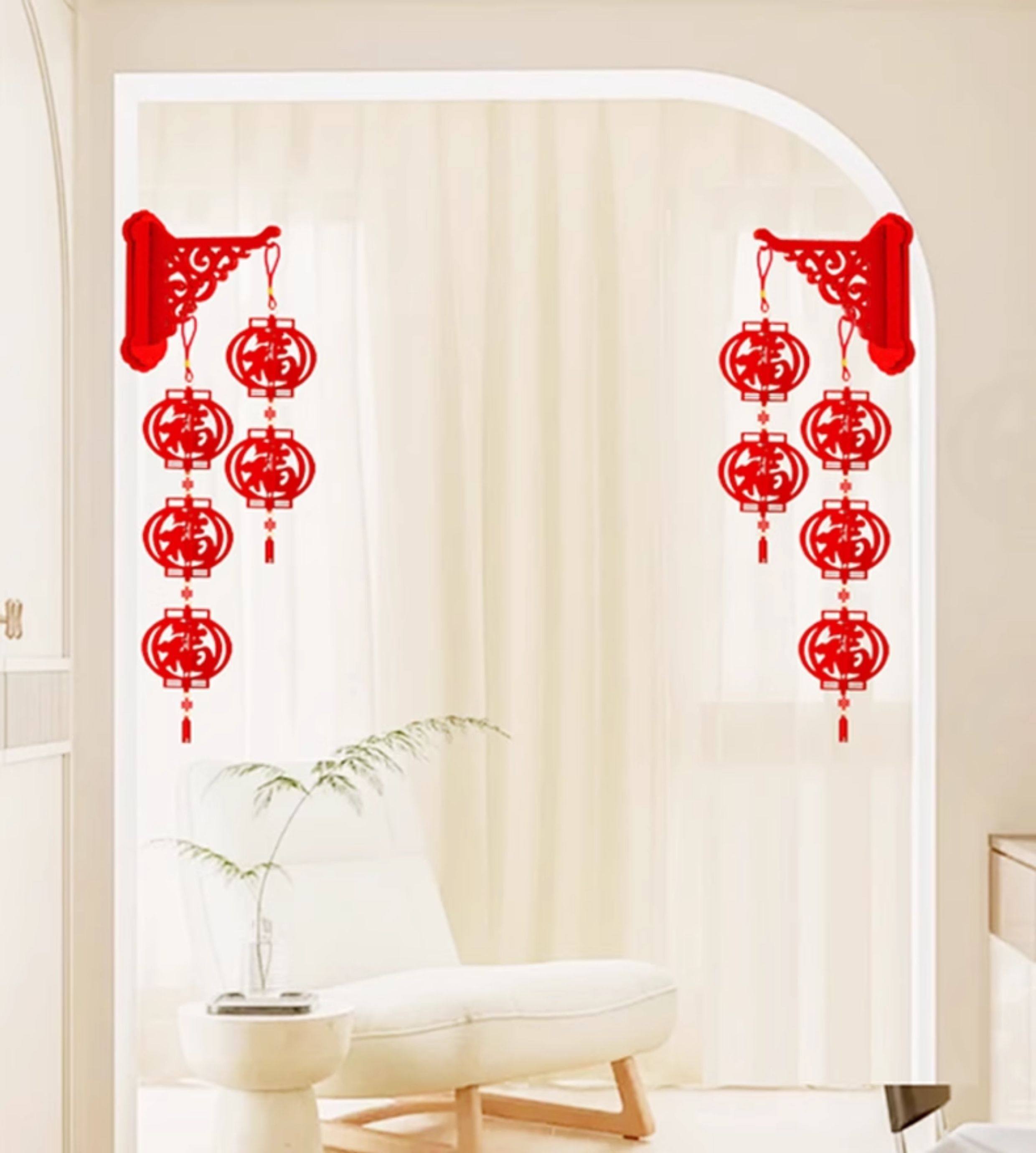 double row 3 lanterns wall hanging fu character 1 pair