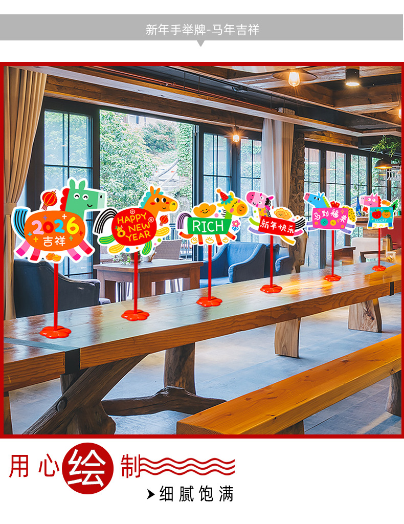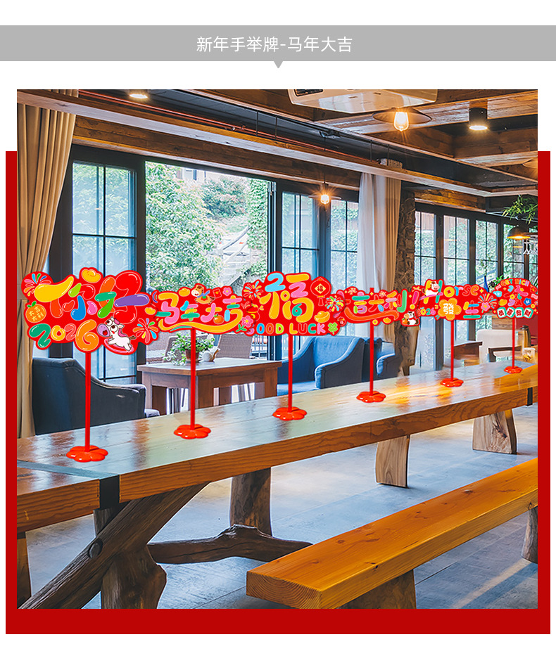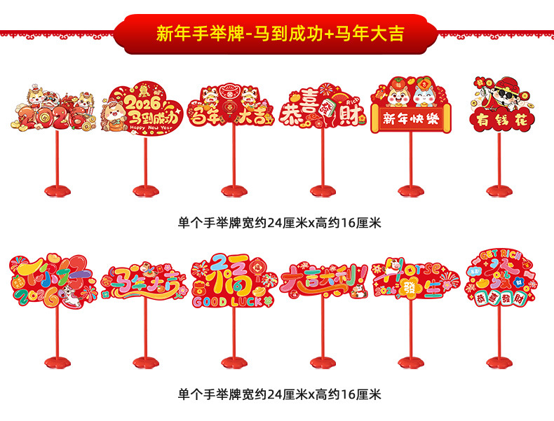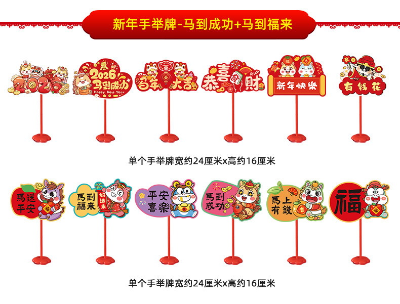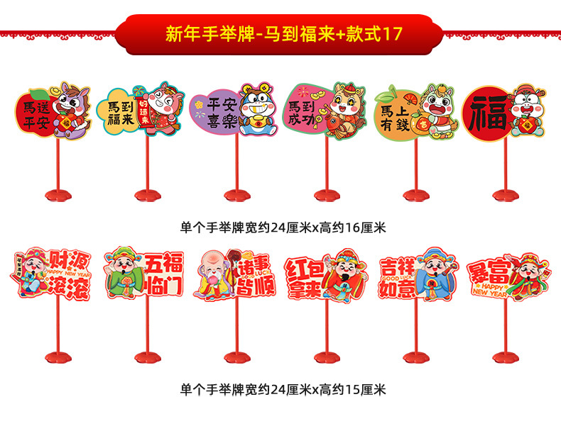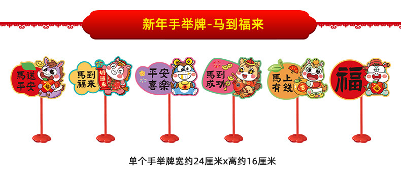 new year whiteboard-horse to fulai + new year whiteboard-immediately rich + pole * 2 + base * 2
