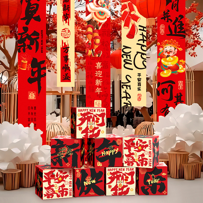 happy new year-pile style boxes [6 packs] + happy new year hanging cloth