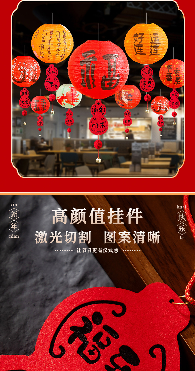 (with light) lantern + fu lu pendant set n