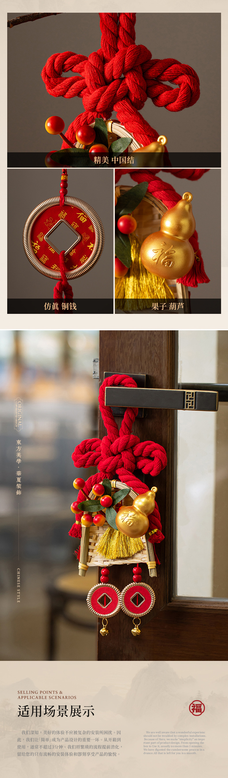 [copper coin hanging prosperous + gourd hanging fu lu double full] pendant (2 in total)