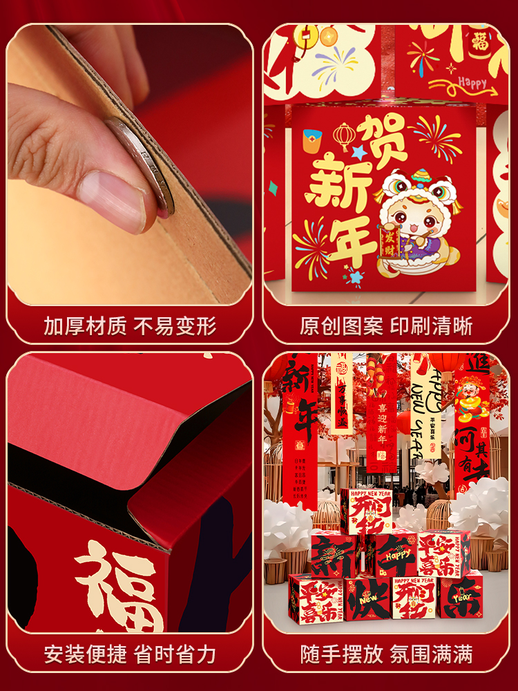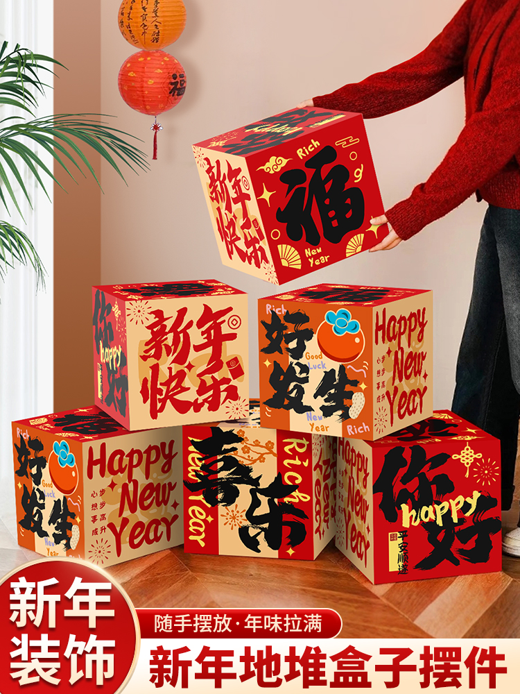 [✥ ✣ ✥] happy new year-pile style boxes [6 packs] + happy new year hanging cloth [✥ ✣ ✥ ✣]]