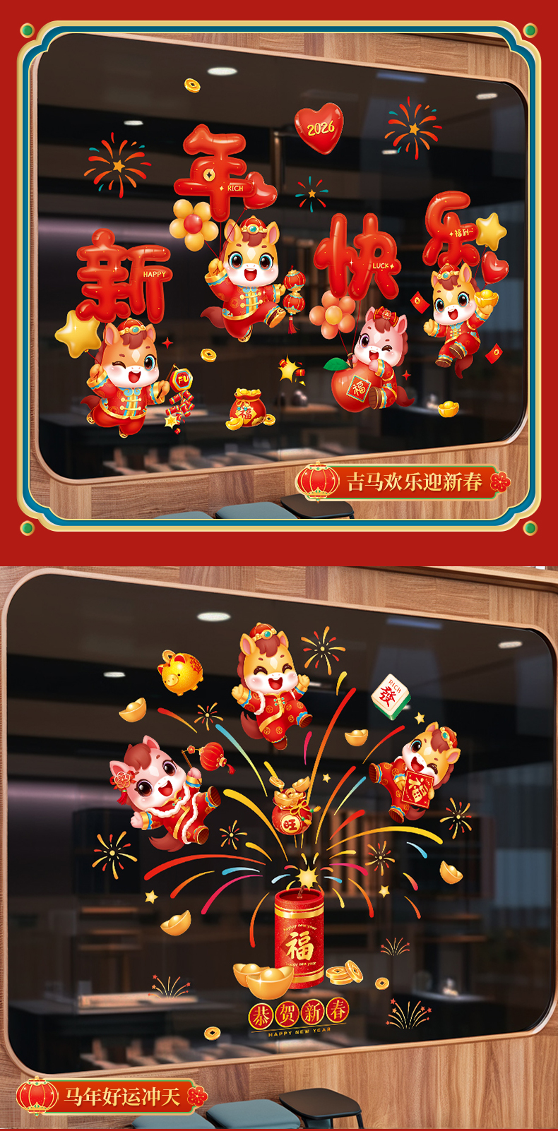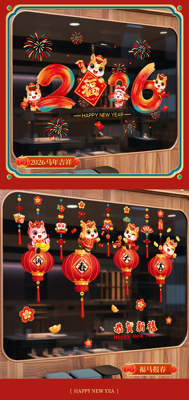 2026 new year of horse [glue-free static sticker/easy to tear]]
