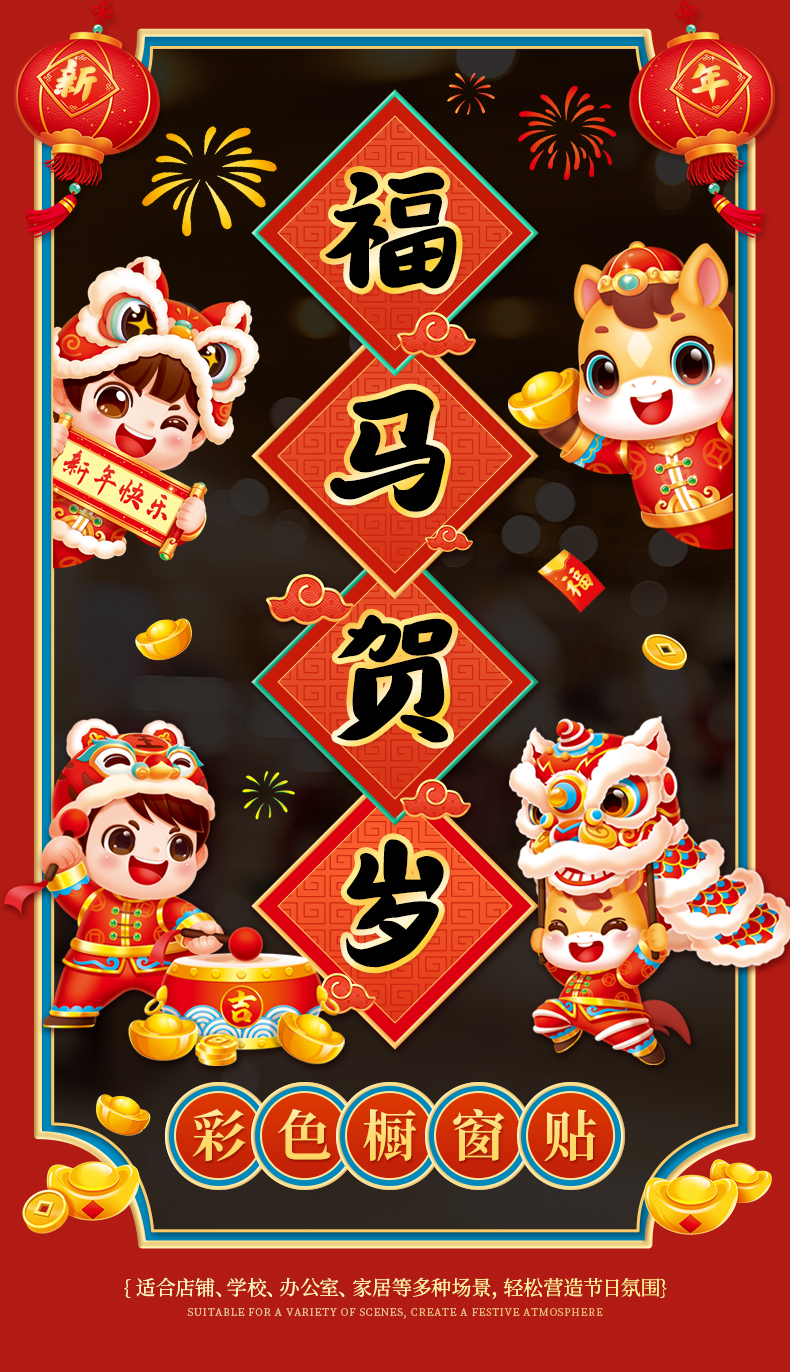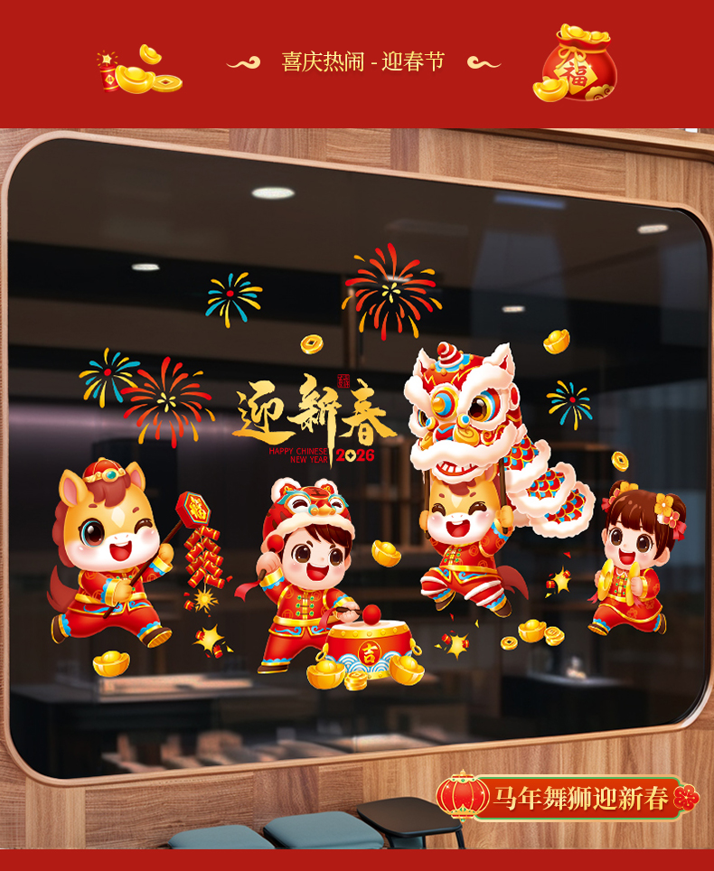 horse year lion dance welcome spring festival [glue-free static sticker/easy to tear]]
