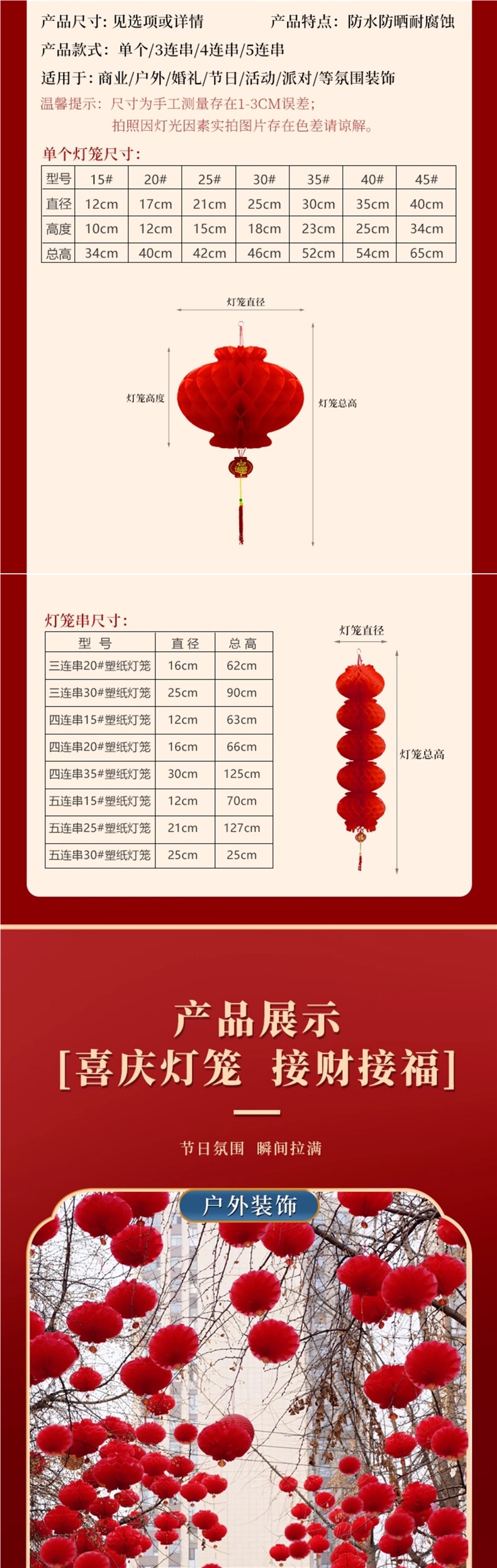 [upgrade thickening] five-piece string 25# plastic paper lantern 10 pack