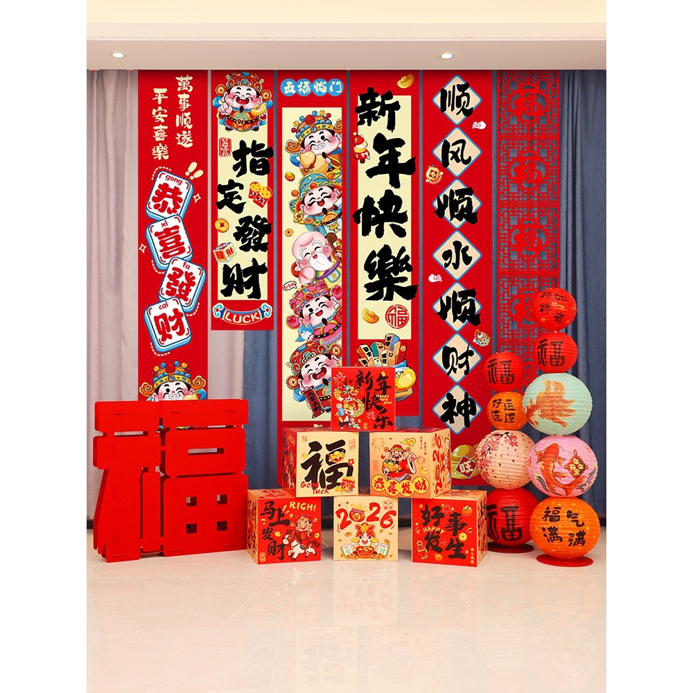 happy new year hanging cloth + six lianfu +6 ground pile boxes