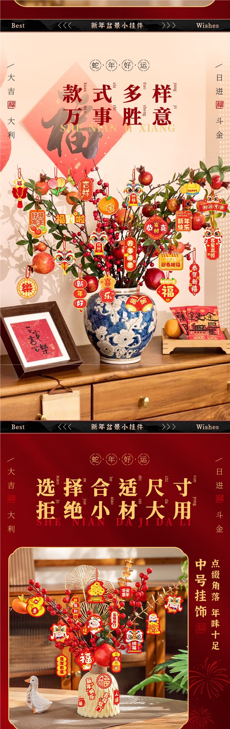 [2 models] felt style hanging fu snake wealth (21) + may good things happen (black word gilding)