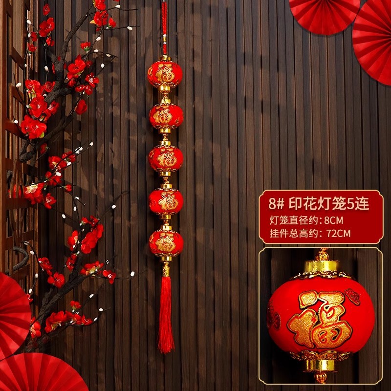 five-piece string red cloth lantern