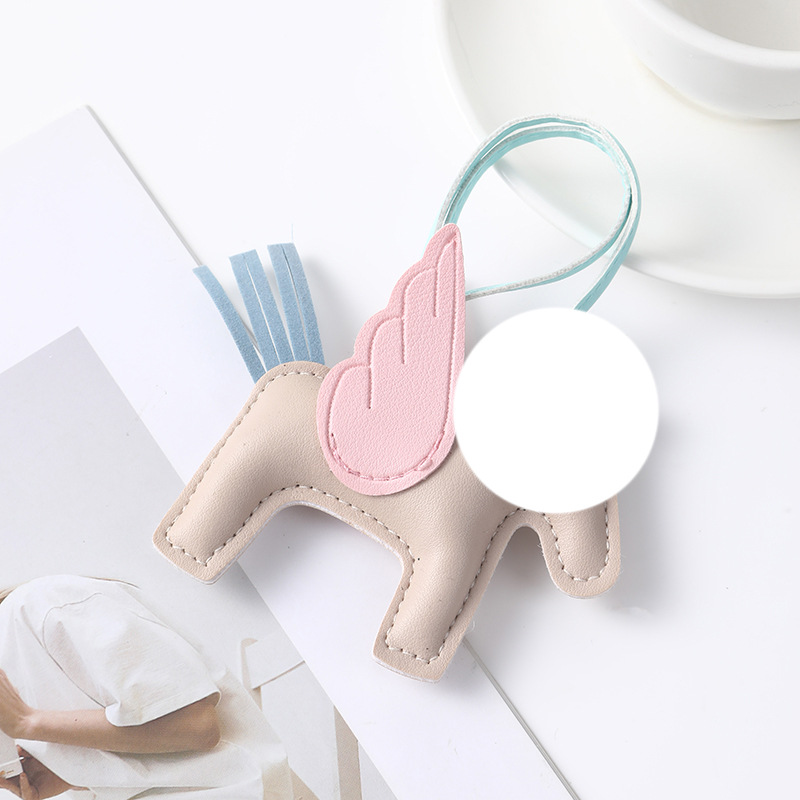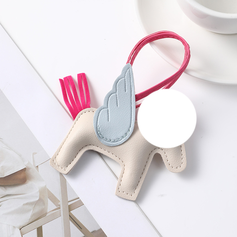 beige pony pink wings-leather pendant