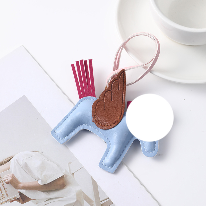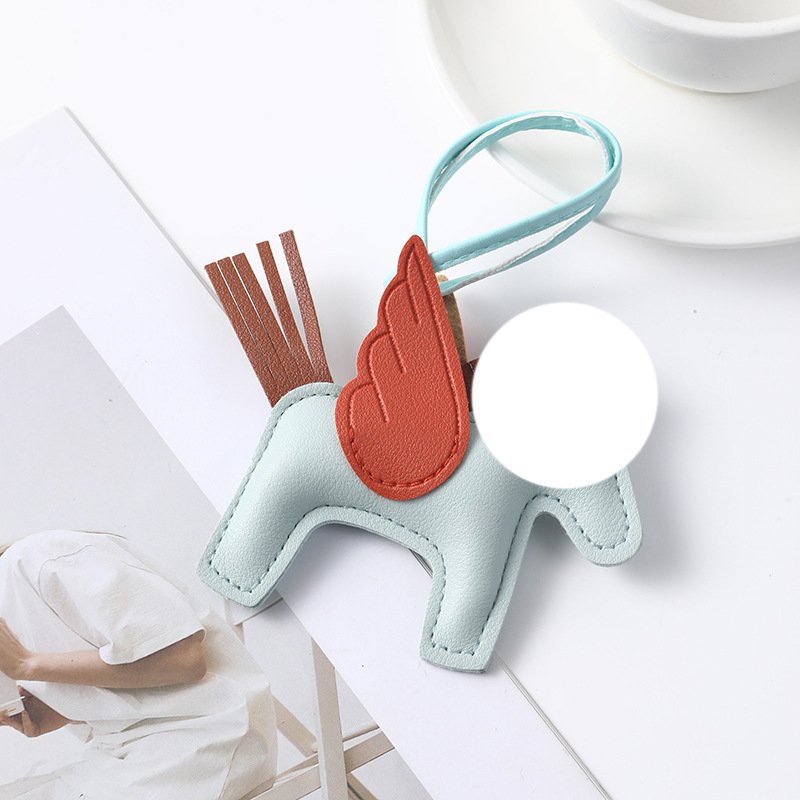 beige pony light blue wings-leather pendant