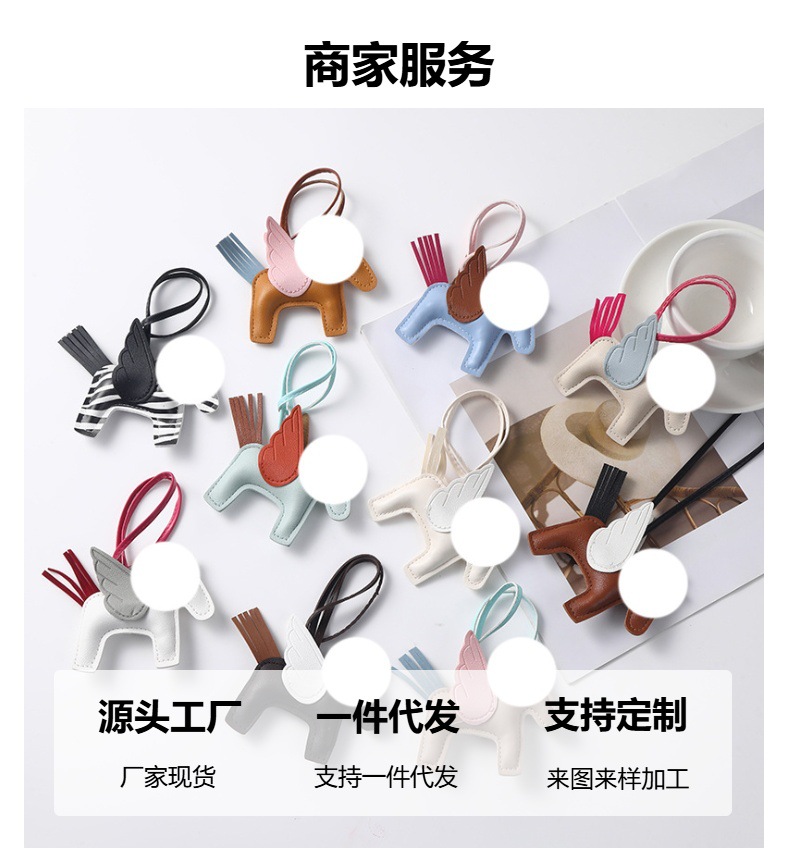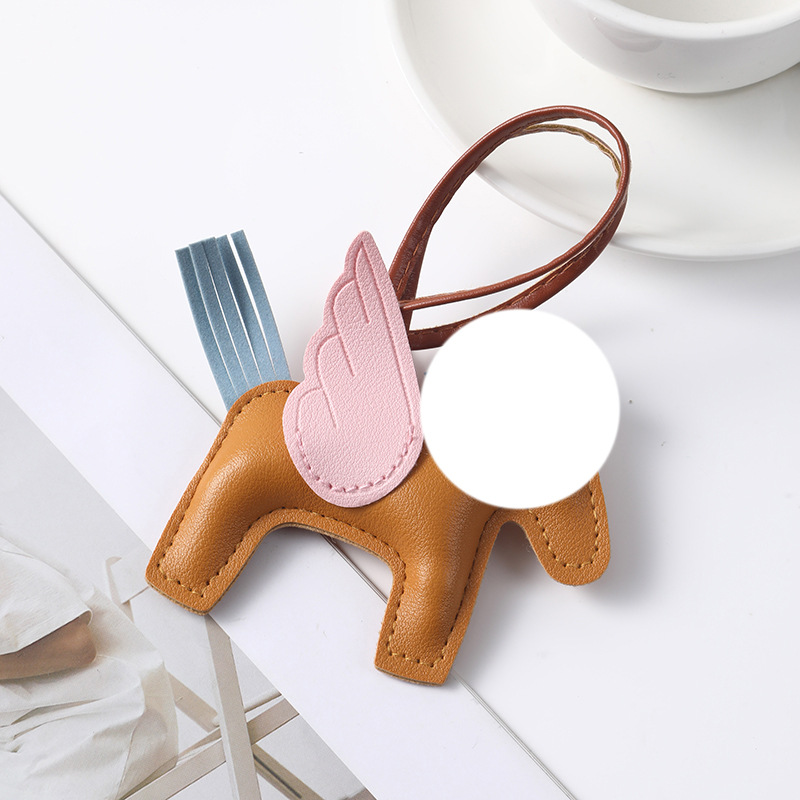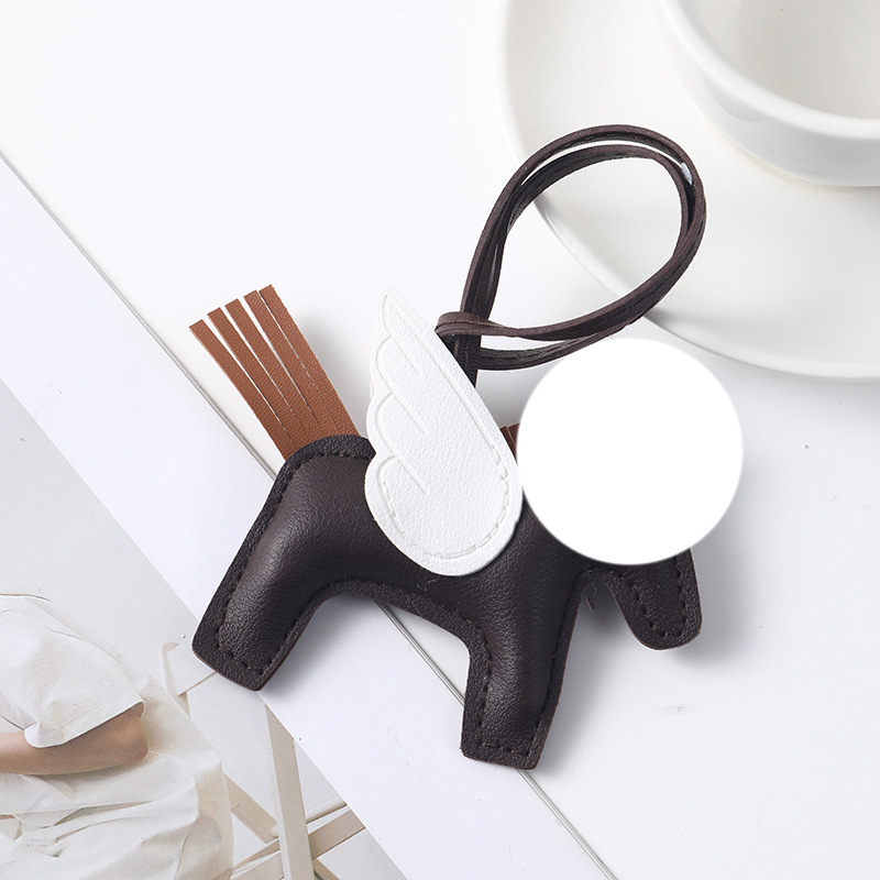brown pony white wings-leather pendant