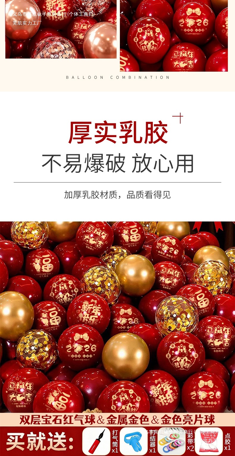 50 pieces new year (double-layer ruby red + gold + gold sequin ball)