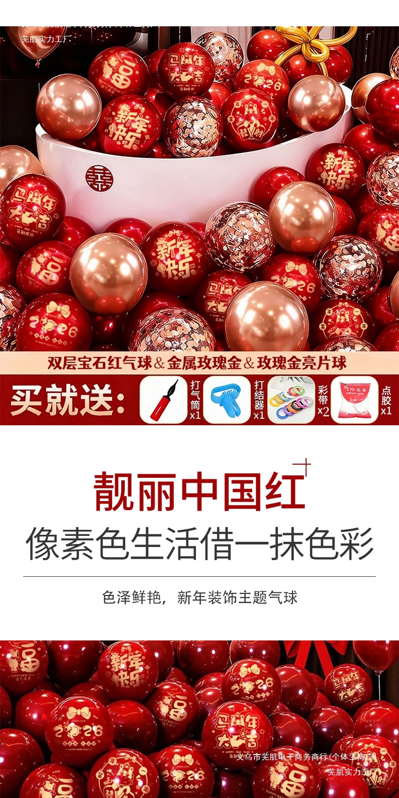 100 pieces new year (double-layer ruby red + rose gold + rose gold sequin ball)