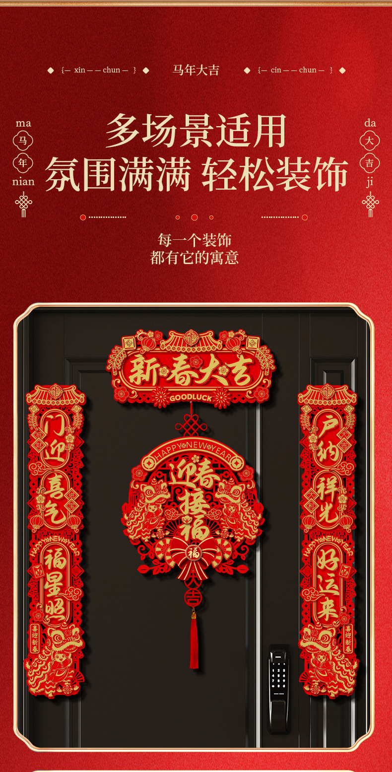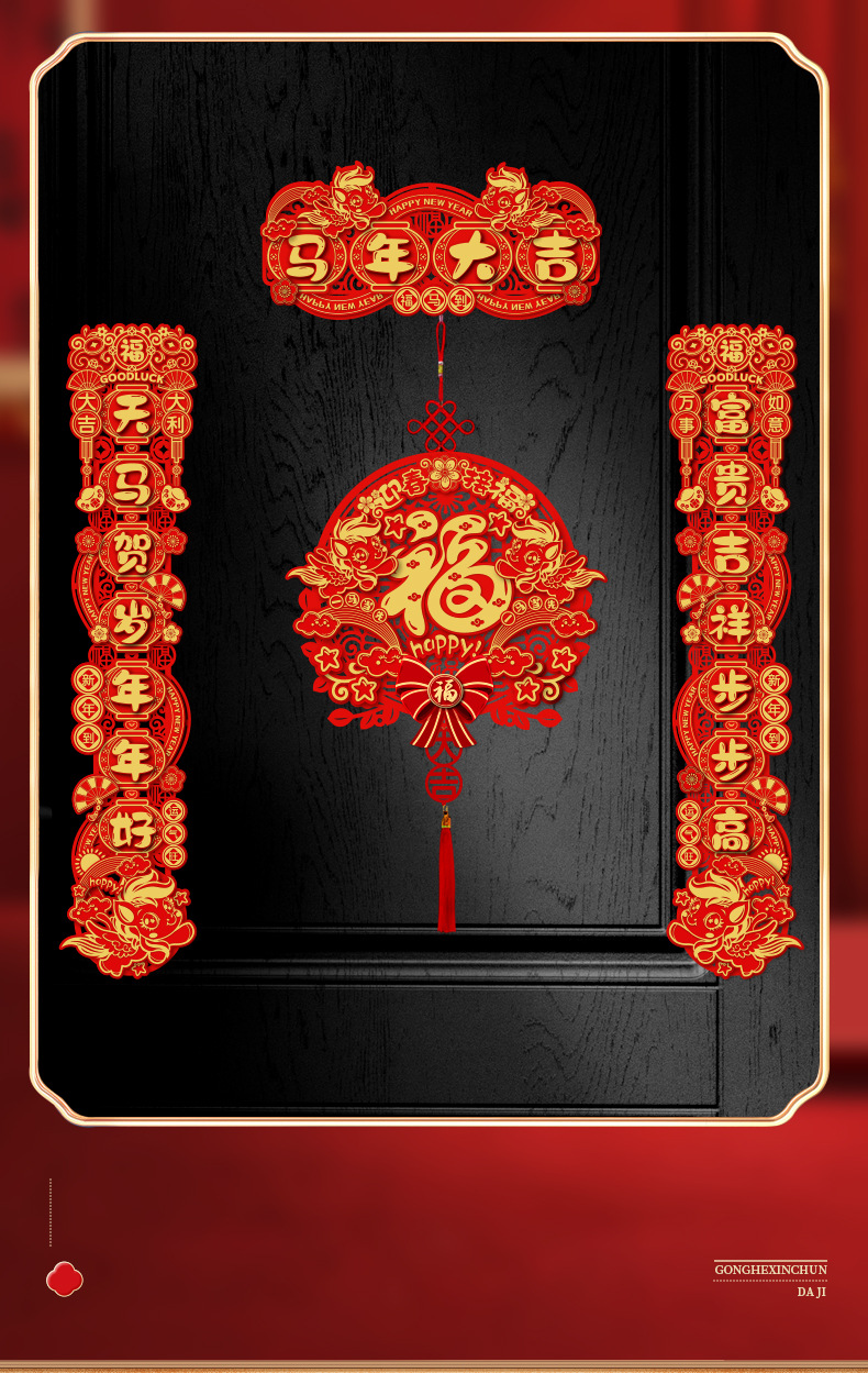 spring festival big luck + three-layer blessing hanging