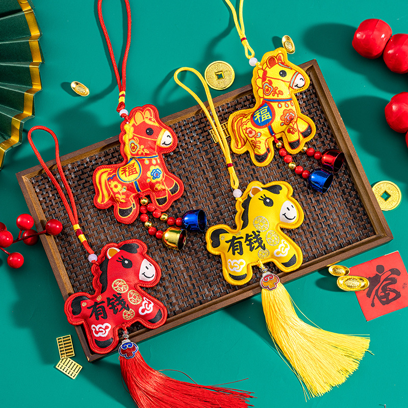 yellow fu character tassel printed