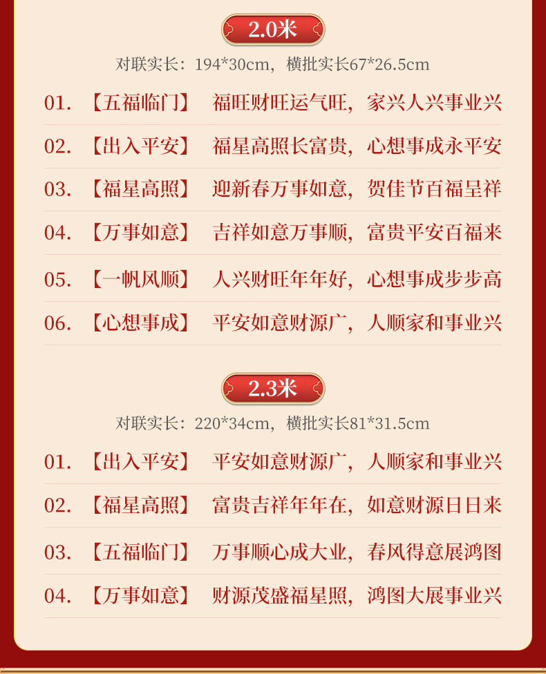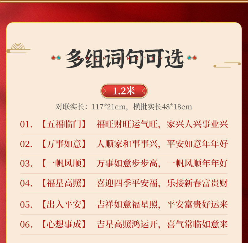 | 2 m01 [five blessings] fuwang, fortune, fortune, prosperity, prosperity (real length 194 * 30cm) | CN¥ 10.37 | 9999999 pair available |