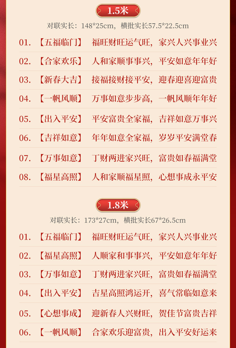| 1.8 m05 [what you want to do] welcome the spring festival, people are prosperous, happy and auspicious (real long 194 * 30cm) | CN¥ 9.15 | 9999999 pair available |