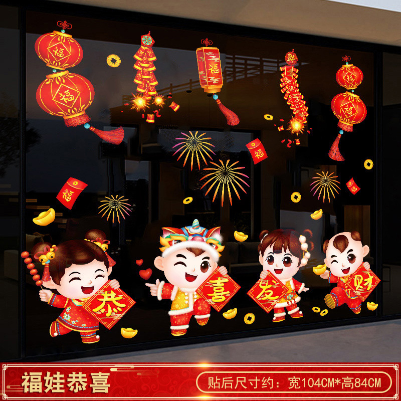 02. yingchun lucky word door sticker [static glue-free] [double-sided same color]]