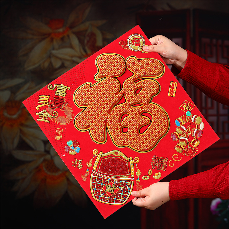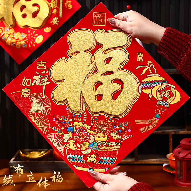 45# [five blessings] flannel three-dimensional fu side length 43cm