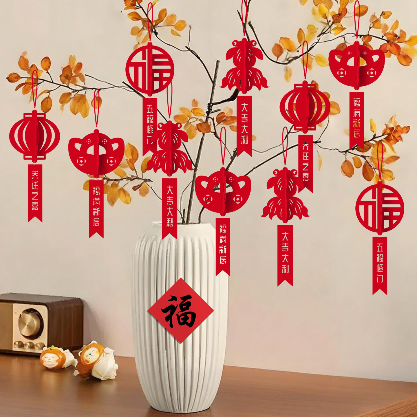 [8] pendants (ingot + koi + lantern + round blessing)