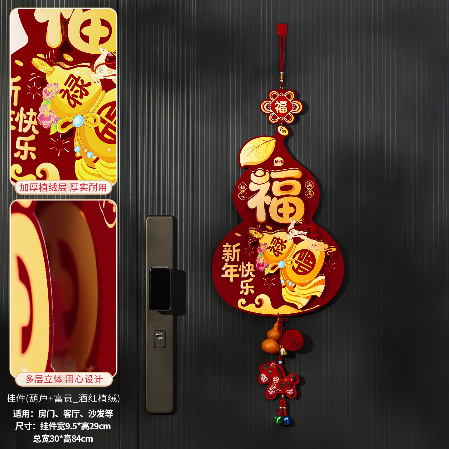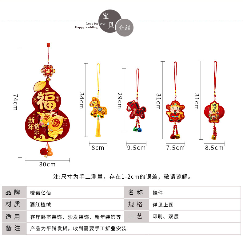 gourd + fugui_wine red flocking pendant [send sticky hook]]