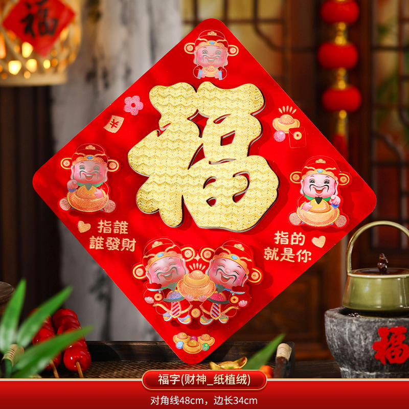fu character (god of wealth_paper flocking) + adhesive