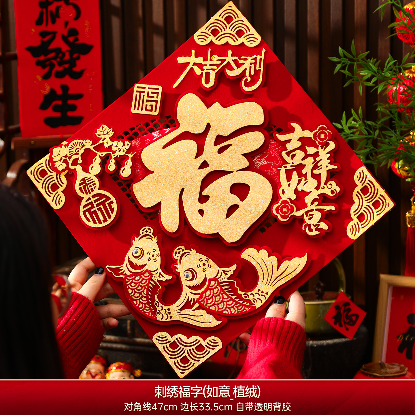 embroidered fu character (ruyi_flocking) + magnetic suction